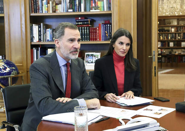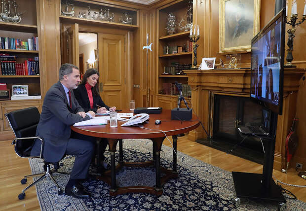 В разгар пандемии коронавируса монархи и политики переходят в режим онлайн. Как и Кейт Миддлтон, королева Летиция ведет переговоры по телефону и участвует в видеоконференциях совместно с супругом, королем Филиппом VI. Вчера королевская чета пообщалась c бизнесменами из Овьедо, административного центра автономного сообщества Астурия, а после поделилась снимками "встречи" из рабочего кабинета во дворце Сарсуэла.