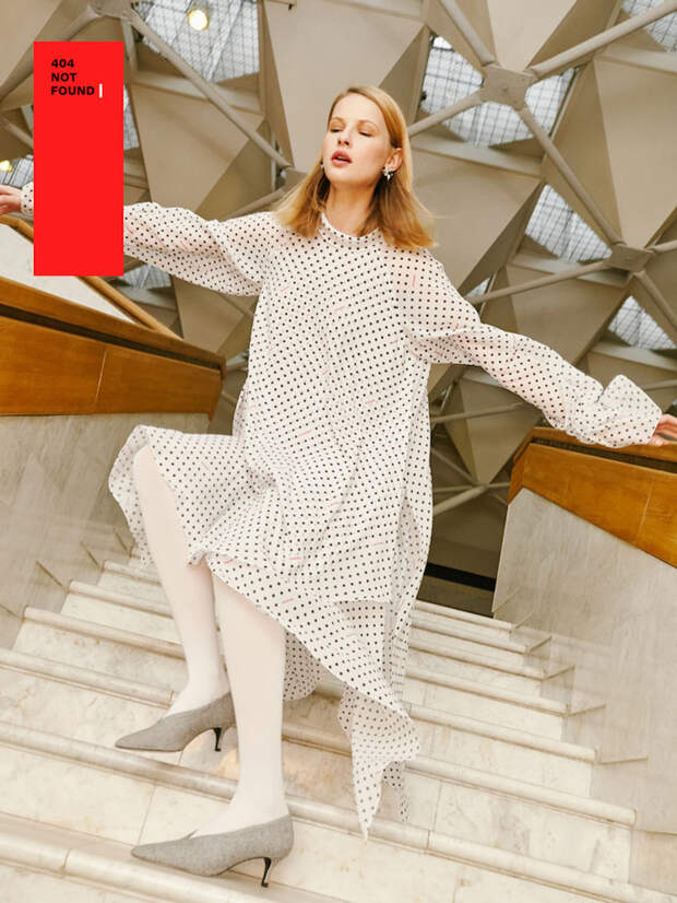 Дизайнерский дуэт Алены Феликсовой и Антона Рудзата руководствуется «философией ошибок», согласно которой каждый неверный шаг является залогом будущей свободы человека. Этой осенью 404 Not Found предлагают носить свободные платья в горох, брючный костюм мужского силуэта, пальто из шерсти и шубу из меха яка, вдохновением для создания которой послужила московская архитектура конструктивизма.