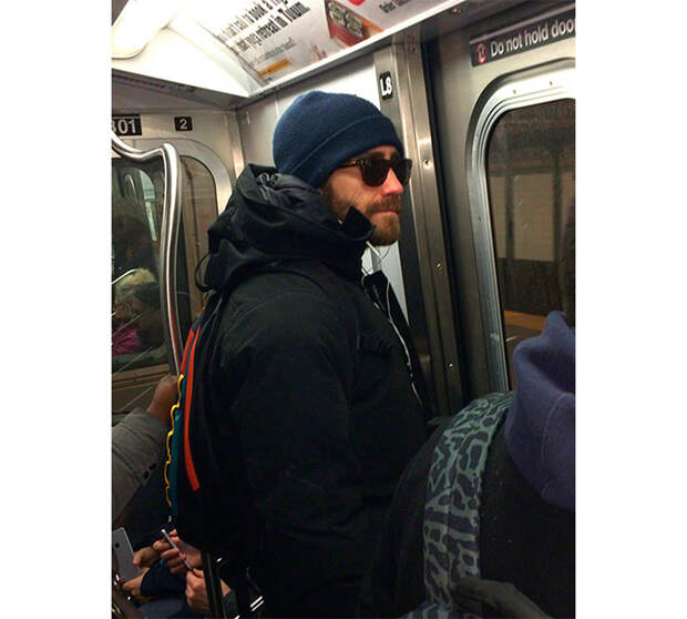 В сети огромное количество фотографий Джейка в вагонах метро. Но самое удивительное даже не это: люди вокруг его просто не замечают (видимо, потому, что и представить себе не могут, что звезды подобной величины в принципе пользуются общественным транспортом).