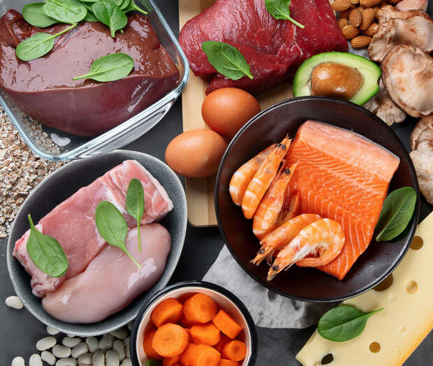 Рекордсмены по содержанию цинка - устрицы (60мг. на 100г.), однако это продукт не самый доступный и часто вызывает аллергию. Далее следует телячья печень, угорь, красное мясо (баранина, свинина, говядина). В белом мясе и жирной рыбе (например в лососе) концентрация цинка чуть меньше, но необходимую норму микроэлемента они вполне способны восполнить.