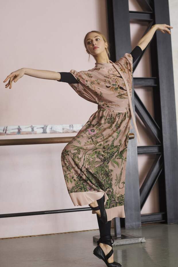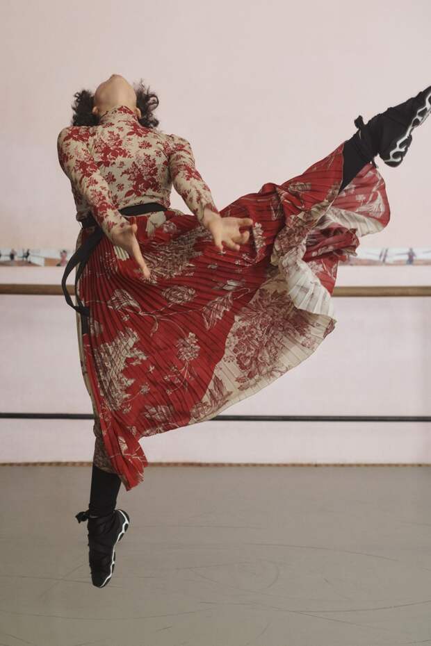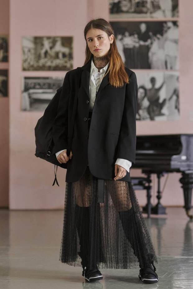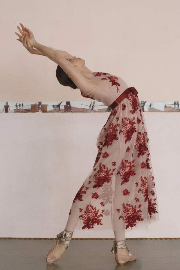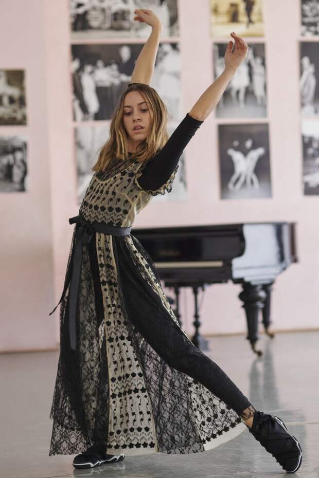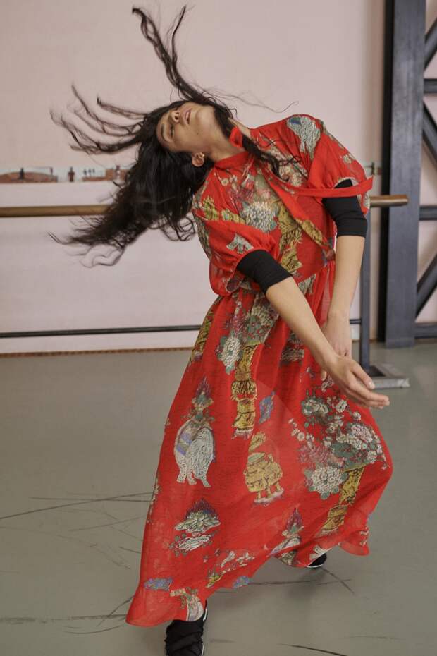 Изящное балетное искусство всегда было близко эстетике бренда Red Valentino, поэтому неудивительно, что Пьерпаоло Пиччоли предложил примерить вещи из своей новой осенней коллекции студентам Римской Национальной академии танца. Танцовщики и хореографы получили полную свободу действий и идеально раскрыли характер шифоновых платьев с кружевными вставками и ручной вышивкой, невесомых юбок-плиссе с росписью в китайском стиле, оверсайз-костюмов, джемперов-паутинок и жакетов с мягкими плечами и, конечно, кроссовок-чулок, издали напоминающих пуанты.