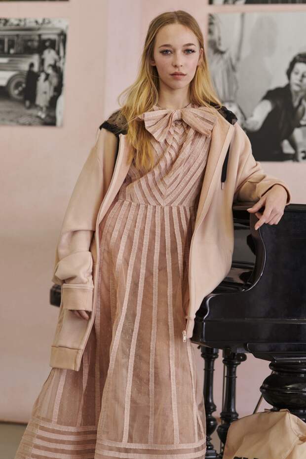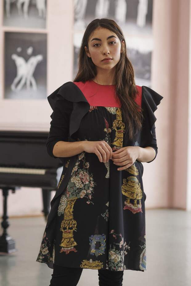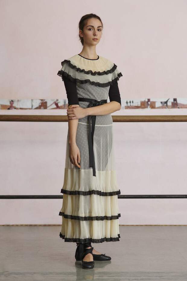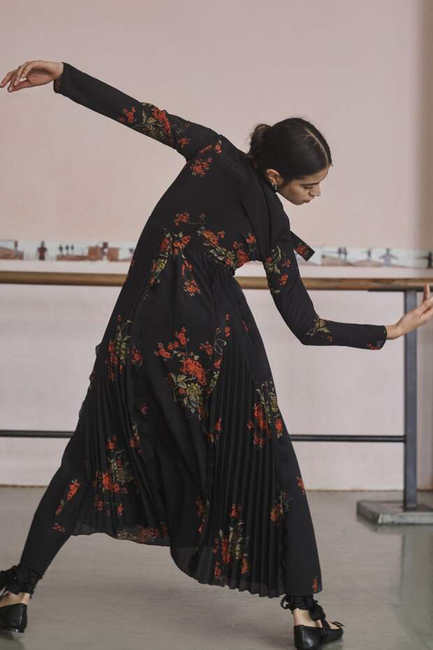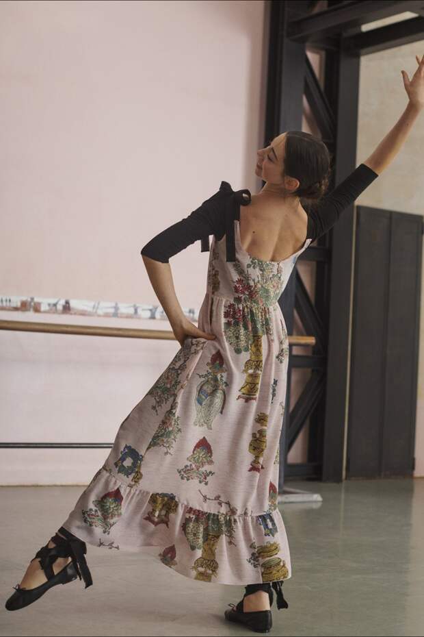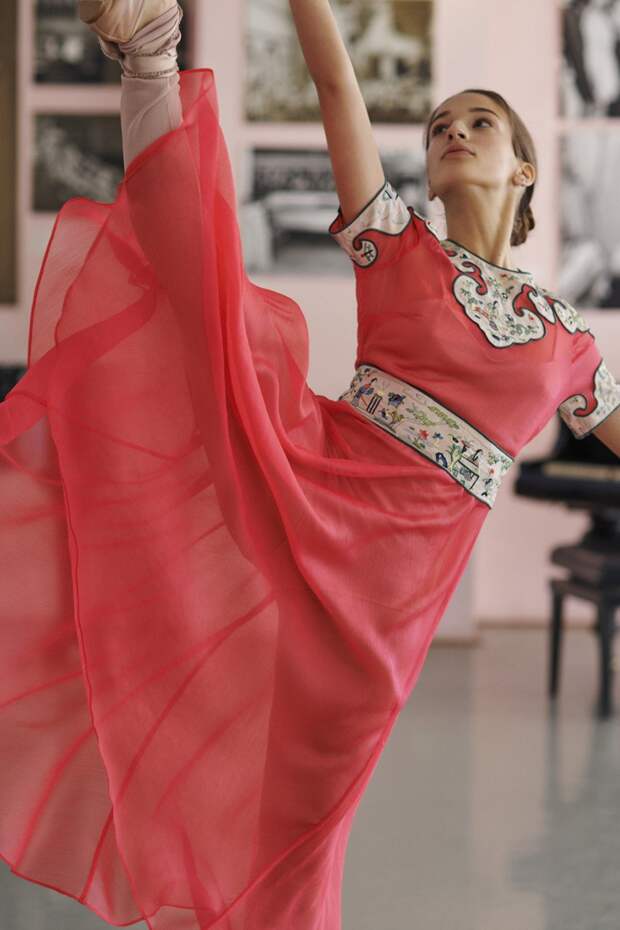Изящное балетное искусство всегда было близко эстетике бренда Red Valentino, поэтому неудивительно, что Пьерпаоло Пиччоли предложил примерить вещи из своей новой осенней коллекции студентам Римской Национальной академии танца. Танцовщики и хореографы получили полную свободу действий и идеально раскрыли характер шифоновых платьев с кружевными вставками и ручной вышивкой, невесомых юбок-плиссе с росписью в китайском стиле, оверсайз-костюмов, джемперов-паутинок и жакетов с мягкими плечами и, конечно, кроссовок-чулок, издали напоминающих пуанты.