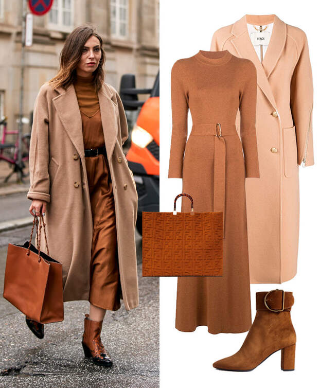 Платье NICHOLAS, 41 497 руб.; пальто FENDI, 181 631 руб.; сумка FENDI, 120 736 руб.; ботильоны SAINT LAURENT, 50 954 руб.