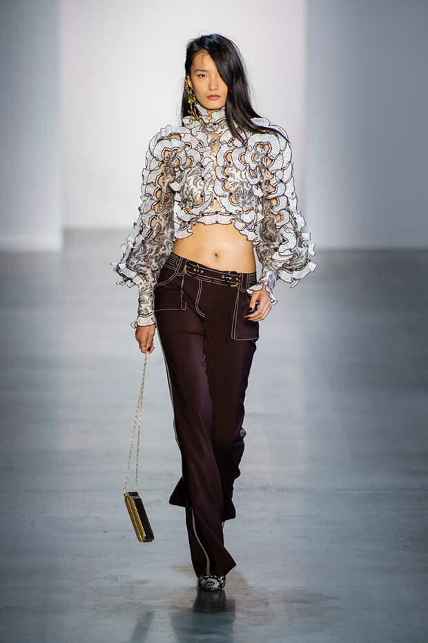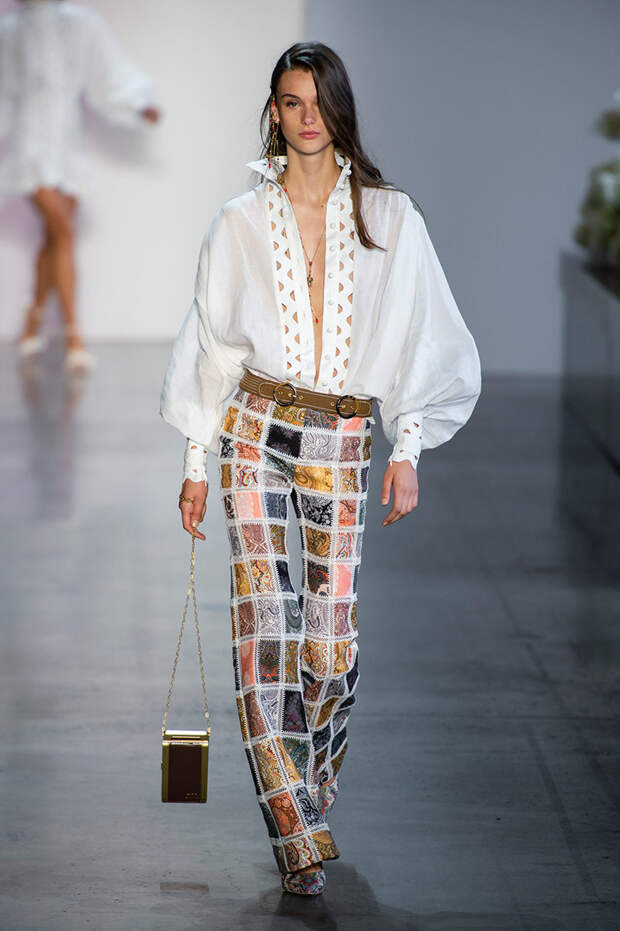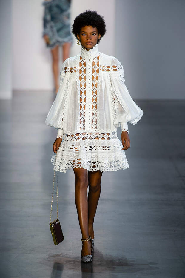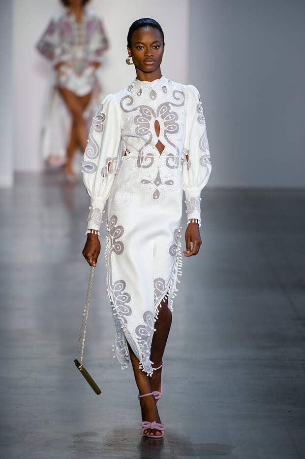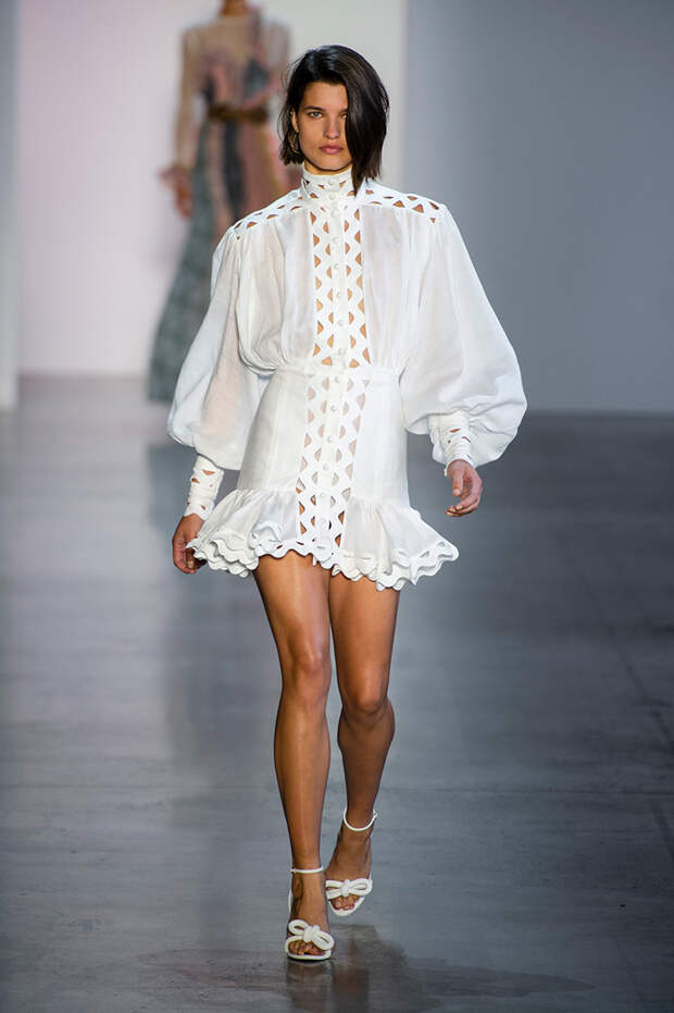 Австралийский бренд Zimmermann уделяет особое внимание деталям — даже если на вид вещь покажется простой, она обязательно будет дополнена аккуратным, кропотливо выполенным декором: тонким кружевом, фантазийными рюшами, круглыми, похожими больше на бусины, пуговицами. Zimmermann возраждает техники, которые оказались на перефирии моды, и применяет их в современных фасонах.