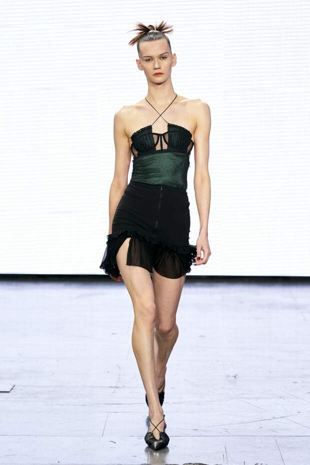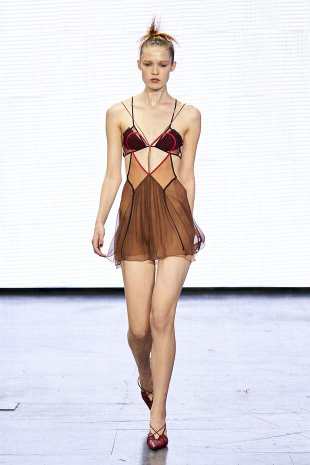 Сегодня в Лондоне состоялось дебютное шоу Nensi Dojaka и презентация новой коллекции бренда. Полупрозрачные боди, бра и корсеты, просвечивающие ткани, многочисленные вырезы, тонкие бретельки, сложный крой и нарочитая сексуальность и женственность — в новой коллекции, да и вообще в фирменном стиле Нэнси, отчетливо читается образование в области бельевого дизайна.