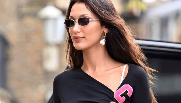 Белла Хадид вывела этот тренд на новый уровень. Модель выбрала топ с крупным лого Дома Chloé, превращенным в декоративную деталь — оно красуется вертикально сбоку и выполнено из объемных мягких букв. Эта вещь выглядит так, будто попала в гардероб модели прямиком из актуальных сейчас 2000-х — поэтому и весь свой образ она решила выдержать в той же стилистике. К топу она добавила широкие черные брюки с низкой посадкой и массивные кроссовки — получился повседневный образ, в котором можно пойти куда угодно.