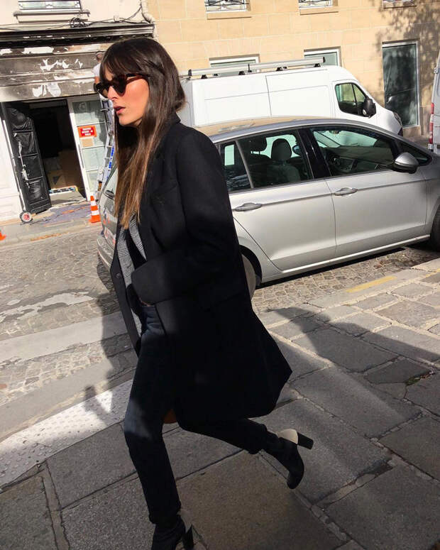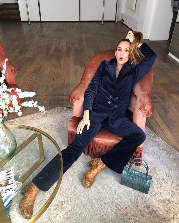 Французские модницы любят совершенно разные костюмы (классические в клетку и просто серые, например). Но мы согласны, что осенью особенно уютно смотрятся комплекты из вельвета. Их можно носить как на голое тело, так и с лаконичными водолазками. А дополнять классическими ботильонами или полусапогами на шнуровке.
