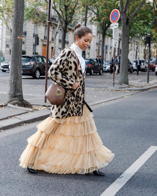 Еще один уютный предмет — это длинный кардиган, в котором вы точно утеплитесь и забудете про холод. Он был популярен среди звезд стритстайла на прошедших Неделях моды, а теперь француженки носят его и в повседневной жизни. Сочетая, например, вот с такими романтичными ренессансными юбками.