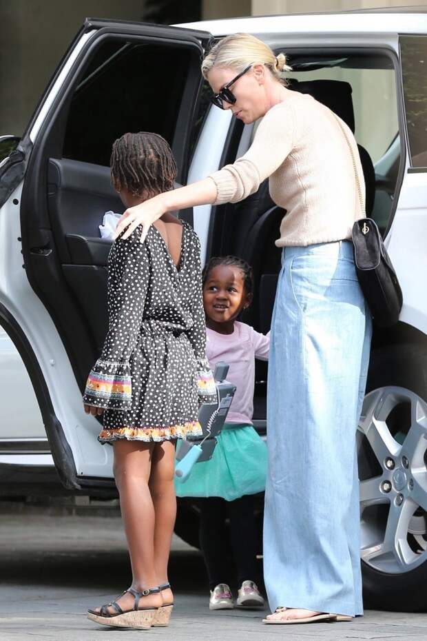 Шарлиз Терон сейчас активно снимается в новом проекте о жизни телевизионного продюсера и экс-руководителя канала Fox News Роджера Эйлса, в котором она сыграет журналистку Мегин Келли. Но в своем плотном графике актриса сумела найти время для семейного ланча в Беверли-Хиллз. В один из местных ресторанов Шарлиз отправилась вместе с детьми, и если раньше мы бы написали, что с ней были дочь Августа и сын Джексон, то теперь, пожалуй, напишем "дети".