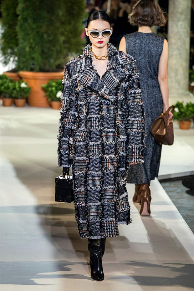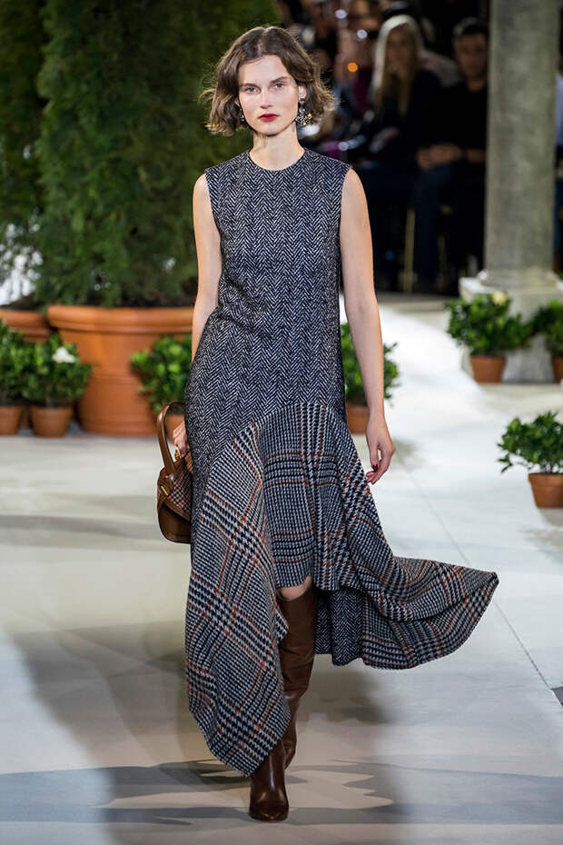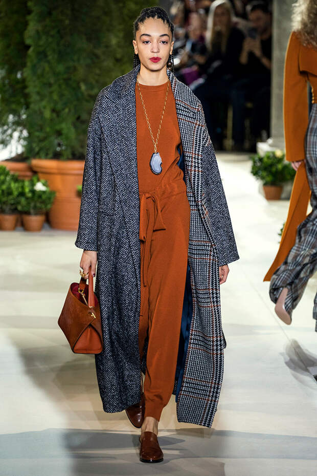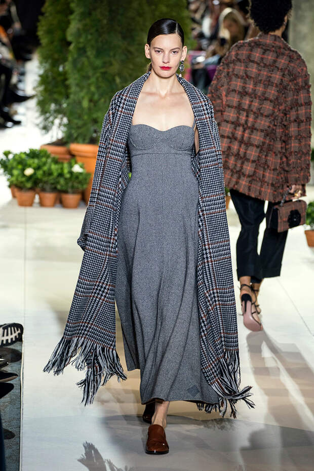 И было интересно в том числе тем, кому еще нет шестидесяти. Новая коллекция - не исключение, а, наоборот, очередная демонстрация этого их таланта.Отталкиваясь от темы путешествий, можно представить сколько угодно совершенно разных коллекций. И немногие из них будут наполовину составлены из вещей с клеткой принца Уэлльского. Не ассоциируются с исследованиями дальних стран ни серые платья, которые уместны будут и в офисе, ни шубы в цветочек, ни вечерние платья в насыщенных, драгоценных оттенках, ни рубиновые халаты поверх платьев-сорочек.Такое взяла бы с собой в поездку только дама Старого света, привыкшая, что за ней повсюду следует заполненная чемоданами под завязку карета.