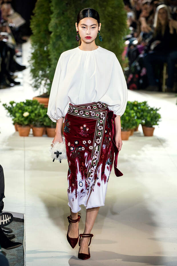 Пригласить Лору Ким и Фернандо Гарсиа на позицию креативных директоров было, как показывает время, лучшим решением руководства Oscar de la Renta. Эти двое сезон за сезоном ловко делают то, что сегодня под силу немногим: переосмысляют старый добрый буржуазный шик так, чтобы это не выглядело ни пародийным, ни старомодным.