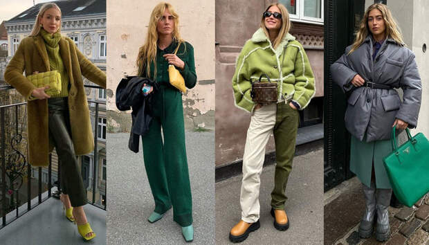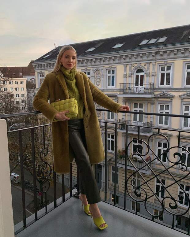 Как бы это ни казалось странным, отлично в этом цвете будет смотреться верхняя одежда — пальто, пуховики, дубленки и даже шубы! Особенно если речь идет о глубоких, темных оттенках зеленого — скажем, изумрудном или темном хаки. Впрочем, и светлые зеленые тона тоже заслужили свое место в вашем осеннем гардеробе. Этой зимой неожиданно выбился в лидеры нежный фисташковый — ключевые фэшиониста мира носят в этом оттенке буквально все. И уж совсем внезапно трендовым оказался неоновый оттенок лайма — как на осенне-зимнем показе Bottega Veneta. В комбинации с цветом темного шоколада или бежевым он выглядит вовсе не вычурно, а очень даже изящно и уместно. Все еще боитесь выйти из дома в зеленом, несмотря на все наши аргументы? Пролистайте собранную нами галерею: там самые стильные девушки мира на своем примере демонстрируют, как носить этот цвет зимой — и быть настоящей дивой.