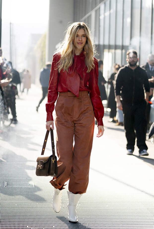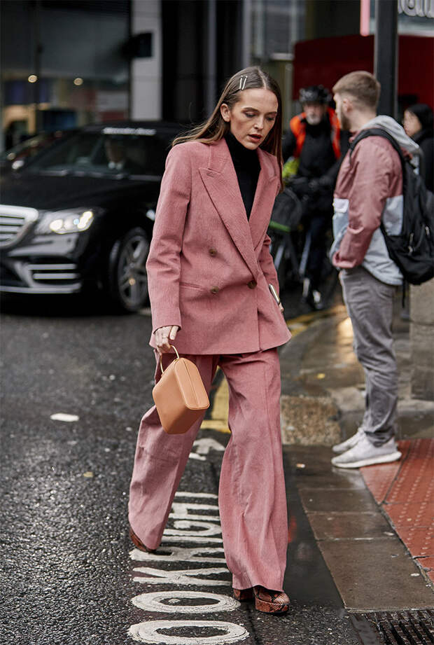 Самый беспроигрышный вариант – сочетать ягодные цвета с так называемыми оттенками земли – коричневым, бежевым и темно-зеленым. Берем на вооружение модные сочетания героинь стритстайла и смело комбинируем платье цвета клубничного милкшейка с коричневым пиджаком. Брюки благородного цвета охры сочетайте с малиновой блузой с бантом и темно-коричневой сумкой геометричной формы. Дополняйте образ белыми казаками – вуаля, модное комбо готово! Если контрастные аутфиты в стиле колор-блок вам не по душе, отдавайте предпочтение ягодным аксессуарам в тандеме с бежевыми тотал-луками – самое время присмотреть себе сиреневую сумочку или розовый берет.