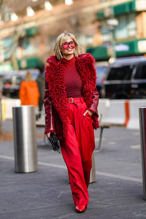 Ягодные цвета вполне закономерно можно внести в список самых броских и акцентных. Безусловно, разнообразить скучные зимние образы сочными оттенками не помешает никому. Глубокий ежевичный, яркий малиновый, приглушенный клубничный – список ягодных цветов можно продолжать до бесконечности. Но лучше не тратить время на теорию и сразу применять все на практике, приправляя повседневные луки акцентными ягодными нотками.