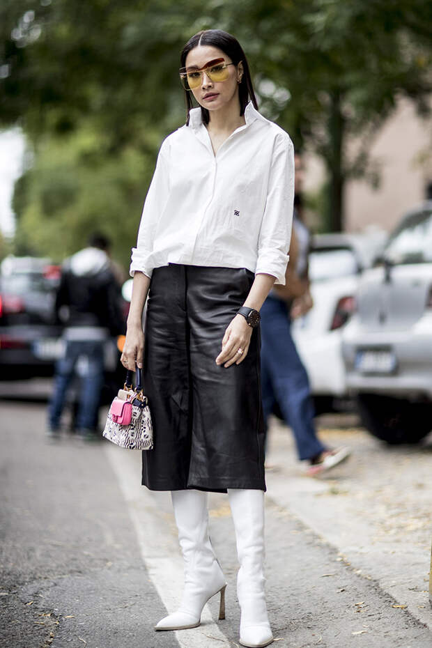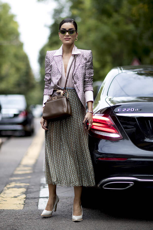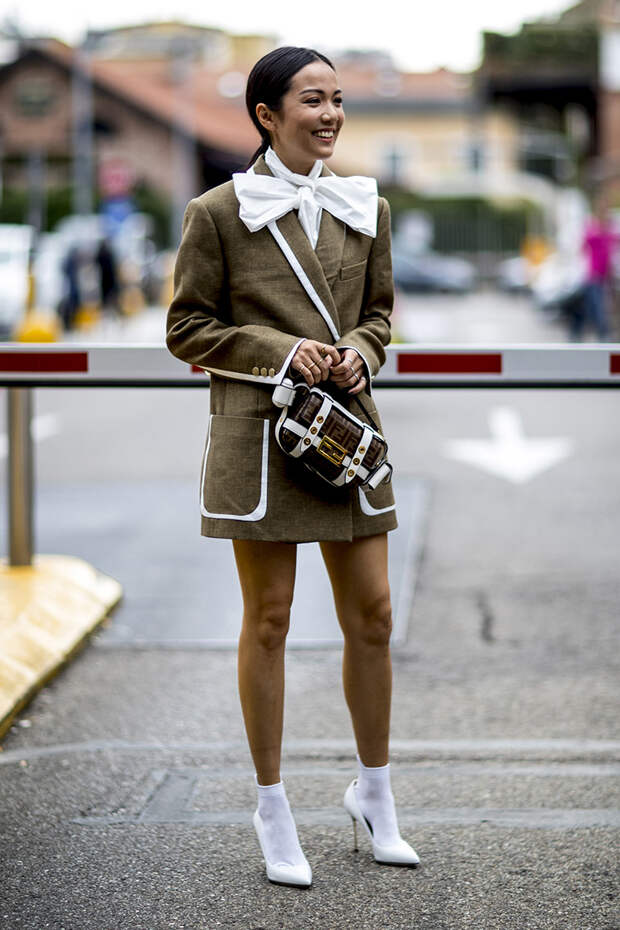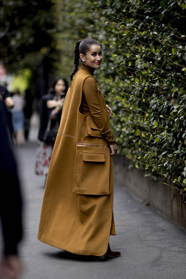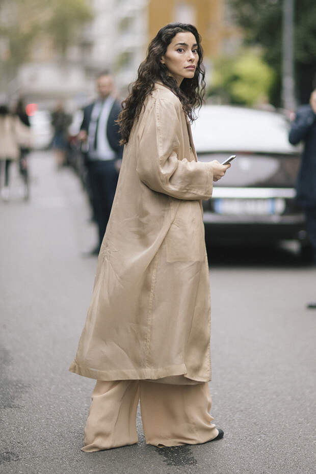 Парад модниц, которые приехали со всего мира в Милан, продолжается. Второй день Недели моды ознаменовался показами MaxMara, Emporio Armani, Fendi, Bottega Veneta, Moschino. На этот раз в хрониках стритстайла можно заметить обилие монохромных образов: тотал-луки молочного цвета, бежевого, хаки. Осенняя погода настигла и Милан, поэтому поверх платьев гостьи шоу носят любимые безразмерные жакеты, тренчи, кейпы.