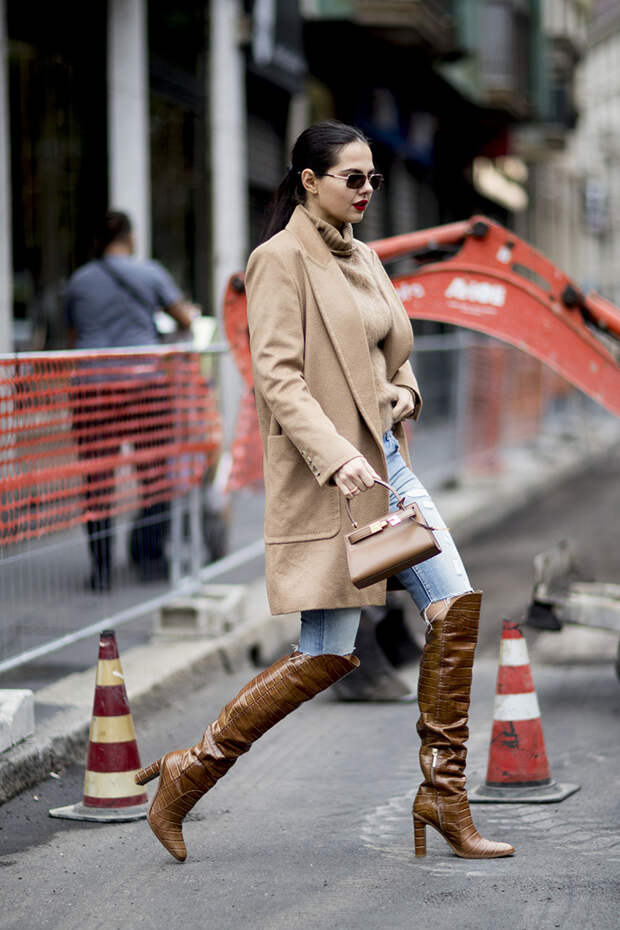Высокие сапоги на голые ноги - еще один любимый стилистический прием. В нашей подборке более пятидесяти самых удачных образов, которыми советуем вдохновляться этой осенью.