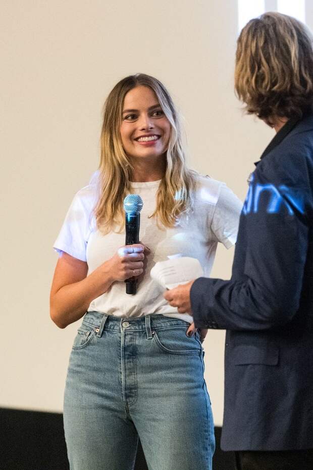 Запишите простую формулу: белая футболка + прямые джинсы из светлого денима + босоножки с тонкими ремешками. Все эти вещи наверняка уже есть в вашем гардеробе - так почему бы вам не повторить простой, но такой стильный образ Марго Робби, который она выбрала для закрытого показа фильма "Однажды в Голливуде" 23 июня?