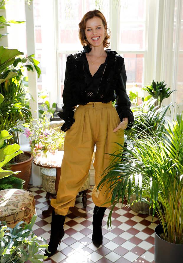 Еще недавно заправлять брюки в обувь было моветоном, а теперь все модницы в едином порыве рекомендуют нам нам именно так встречать весну. Ева Герцигова тоже не осталась в стороне от трендов: чешская супермодель пришла на ланч, устроенный в Лондоне в честь новой коллекции Alberta Ferretti, в светло-коричневых шароварах с высокой посадкой, которые небрежно заправила в замшевые ботильоны на шпильке.