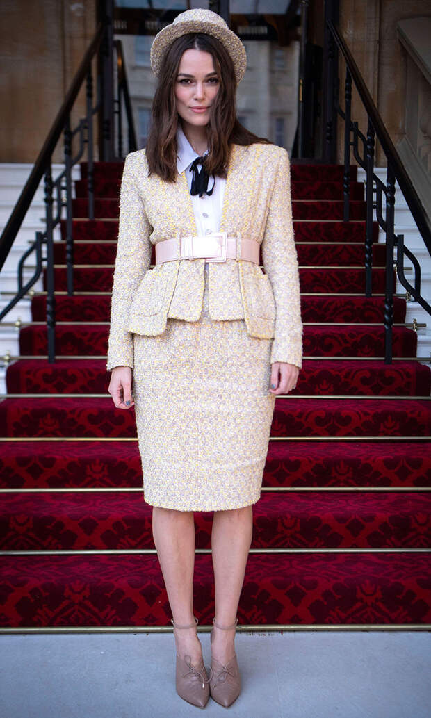 Сегодня особенный день для Киры Найтли: 33-летняя актриса была удостоена рыцарской награды - почетного ордена Британской империи (OBE). Торжественная церемония прошла в Букингемском дворце. На вручение двукратная номинантка на "Оскар" пришла в компании родителей и супруга. Кира, будучи давней музой Chanel, выбрала тотал-лук от французского модного Дома: классический твидовый костюм и изящную шляпку-канотье - все по королевскому дресс-коду.