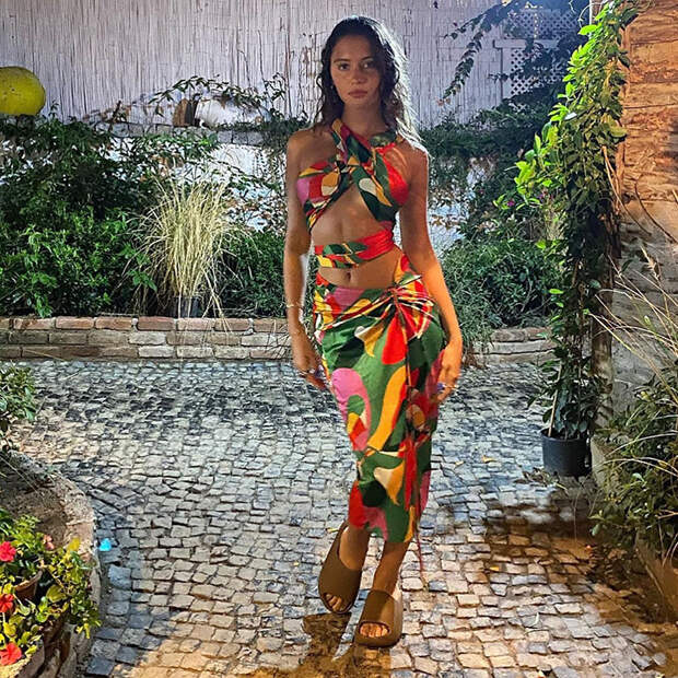 Айрис получается хорошо не только на профессиональных фото. Доказательство тому - последнее снимки в ее Инстаграме, где она позирует в откровенном наряде. Платье из шелка с ярким абстрактным принтом подчеркнуло идеальную фигуру и золотистый загар девушки. И несмотря на то, что к сексуальному пляжному платью она подобрала футуристичные тапочки Yeezy, образ получился очень удачным.