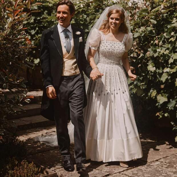 Внучка британской королевы сыграла камерную свадьбу с Эдоардо Мапелли Моцци 17 июля прошлого года. На церемонии присутствовали только самые близкие и родные пары. Венчание переносилось несколько раз, и принцесса Беатрис просто не могла больше ждать. Любимая внучка Елизаветы II пошла к алтарю в винтажном платье своей венценосной бабушки: наряд из тафты оттенка слоновой кости Norman Hartnell идеально подошел к этому случаю.