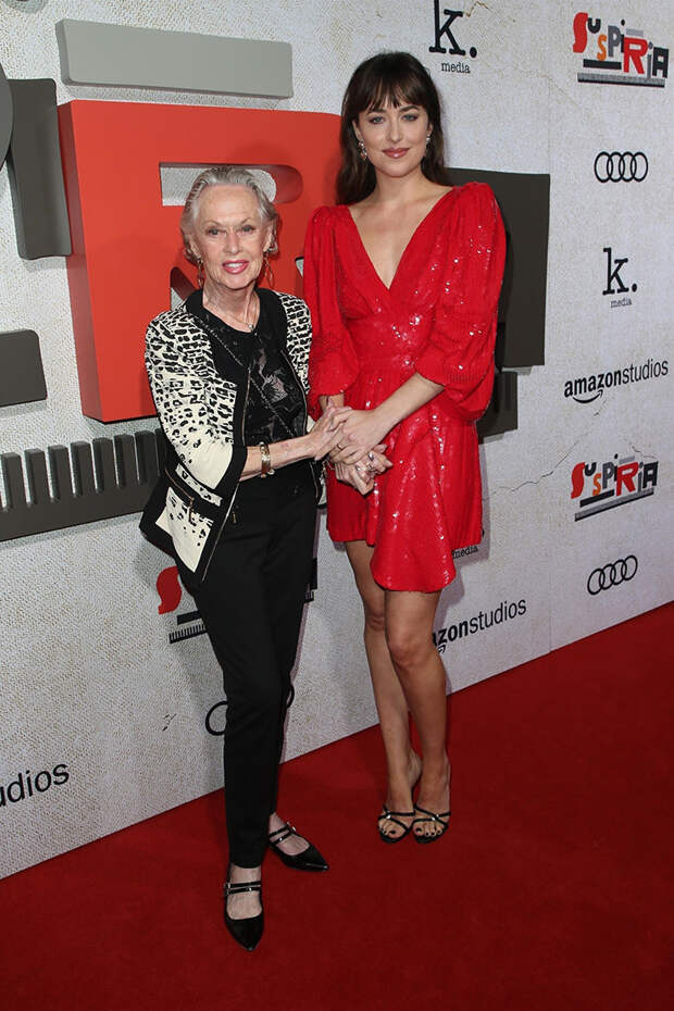 А вот Дакота Джонсон прибыла в ArLight Cinerama Dome в алом платье Celine с пайетками, да еще и не одна, а за компанию с бабушкой Типпи Хедрен, звездой фильма "Птицы" — теперь мы знаем, что гены — великая вещь.