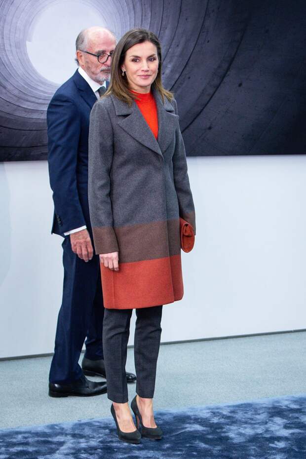 А, во-вторых, наша героиня наглядно показывает и подсказывает, как добавлять яркие оттенки и необычные акценты, не нарушая дресс-код.Вчерашний выход Летиции тоже стоит взять на заметку: королева Испании посетила мероприятие Фонда по борьбе с наркотиками в Мадриде в пальто Hugo Boss, состоящем из нескольких оттенков — в том числе, ультрамодном в следующем сезоне — коралловом. Цветовую гамму верхней одежды монаршая особа поддержала узкими серыми брюками, ярким трикотажным топом и замшевыми лодочками от любимого бренда Magrit.