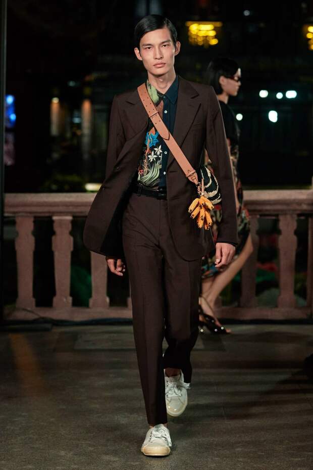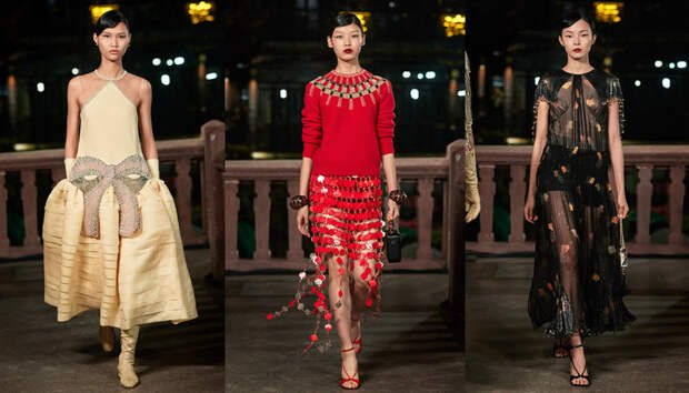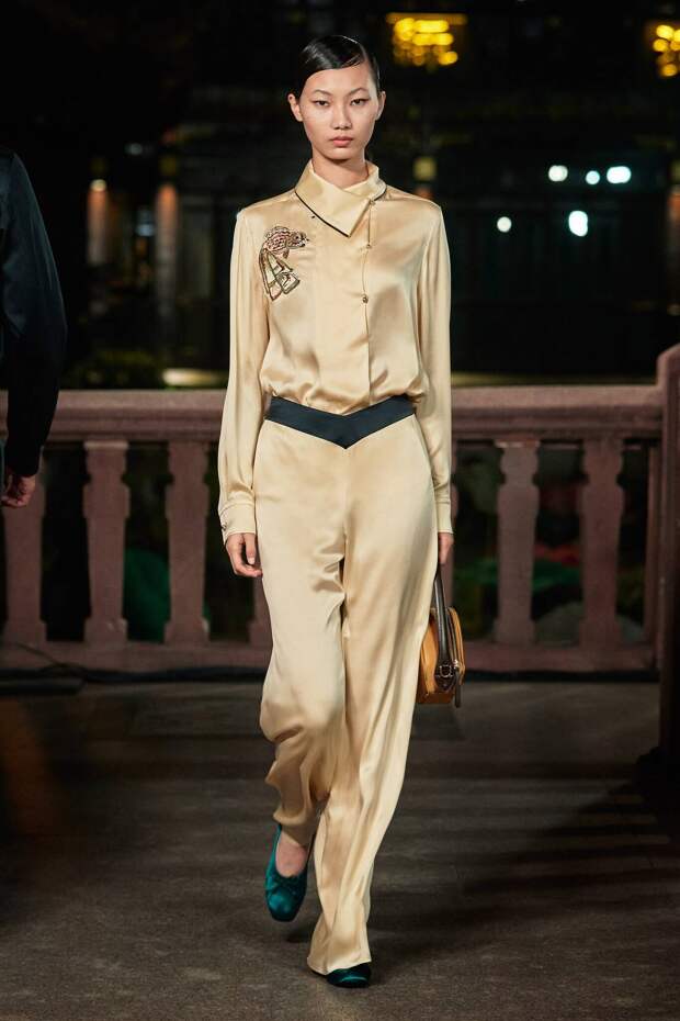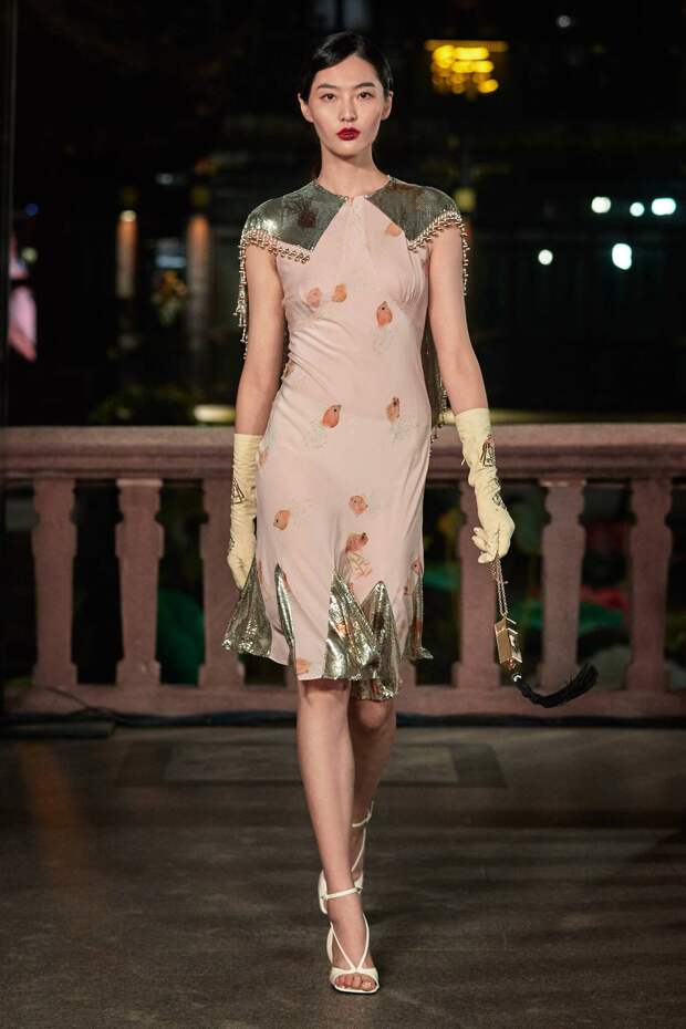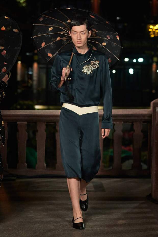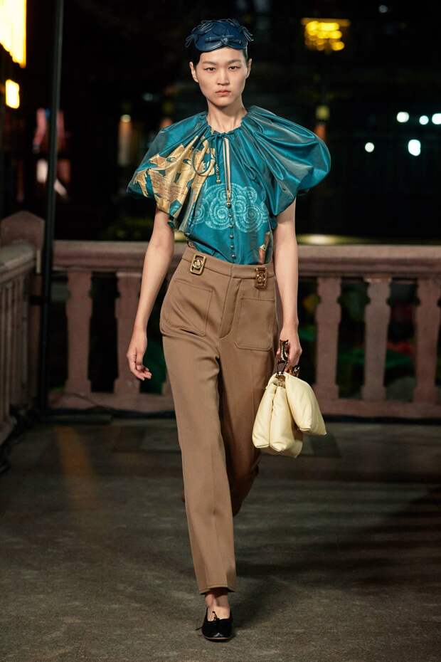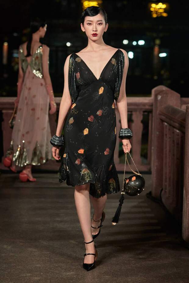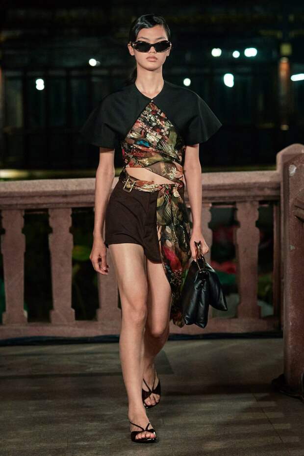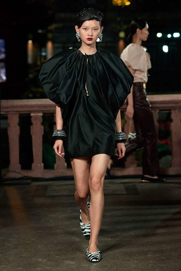 Также в шоу появились принты, навеянные знаменитыми иллюстрациями Жоржа Лепапа, которые он рисовал для Lanvin, и каблуки на босоножках, цитирующие крышку на флаконах винтажных духов Дома. В целом все шоу было пронизано духом ар-деко — и в этом тоже прослеживается бесспорная логика. Пик славы Жанны Ланвен пришелся на 20-30-е годы — эпоху доминирования этого стиля в искусстве по всему миру. Да и сама она в некотором смысле была его воплощением. Главные признаки ар-деко — цвет, геометрия и простые формы. И все они очевидным образом прослеживались в ее простых и очень удобных вещах с большим количеством драгоценного декора.Еще одним важным лейтмотивом коллекции стал Китай — начиная с проведения показа в Шанхае и заканчивая принтами в стиле шинуазри на платьях и топах. И это, опять же, очень логичное решение сразу на нескольких уровнях. Во-первых, Lanvin сейчас входит в китайский финансово-промышленный конгломерат Fosun International. Во-вторых, Китай все последние годы был главной надеждой и опорой всего мира моды — именно китайские потребители оказались самыми лояльными и щедрыми. В-третьих, страна быстрее всех пережила и победила коронавирус — а значит, там, в отличие от родного для марки Парижа, можно устраивать полноценные показы с неограниченным числом гостей. И, наконец, в творчестве Жанны Ланвен также не раз обнаруживались отчетливые китайские мотивы — например, вышивки в стиле шинуазри на тех самых знаменитых robe de style. Судя по всему, Бруно Сиалели знает, что делает. Причем не только в части творчества, но и бизнеса — работать именно с китайским рынком сейчас выгоднее всего.