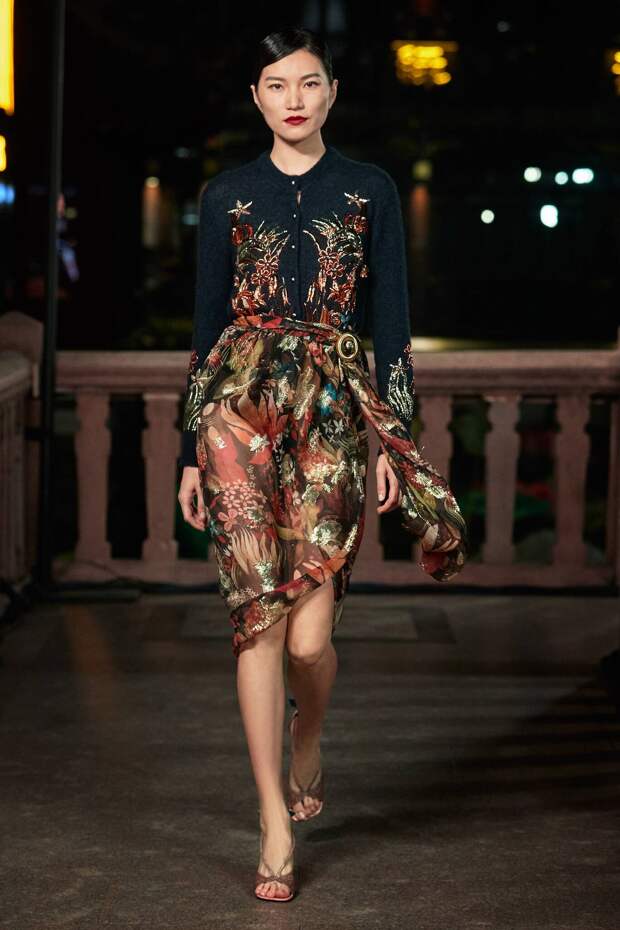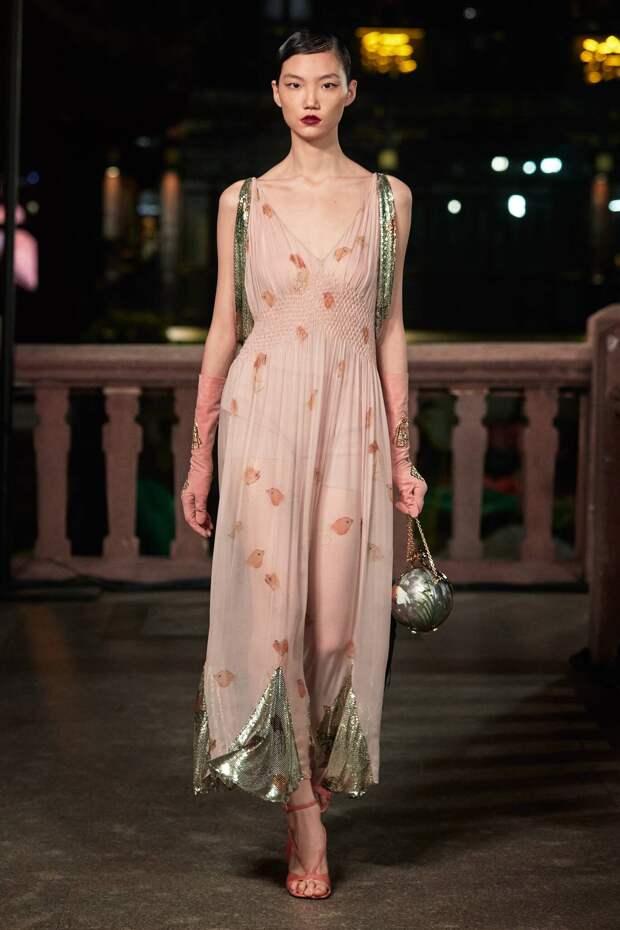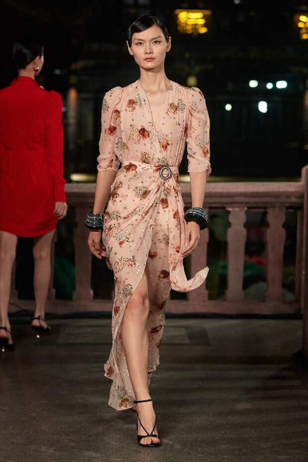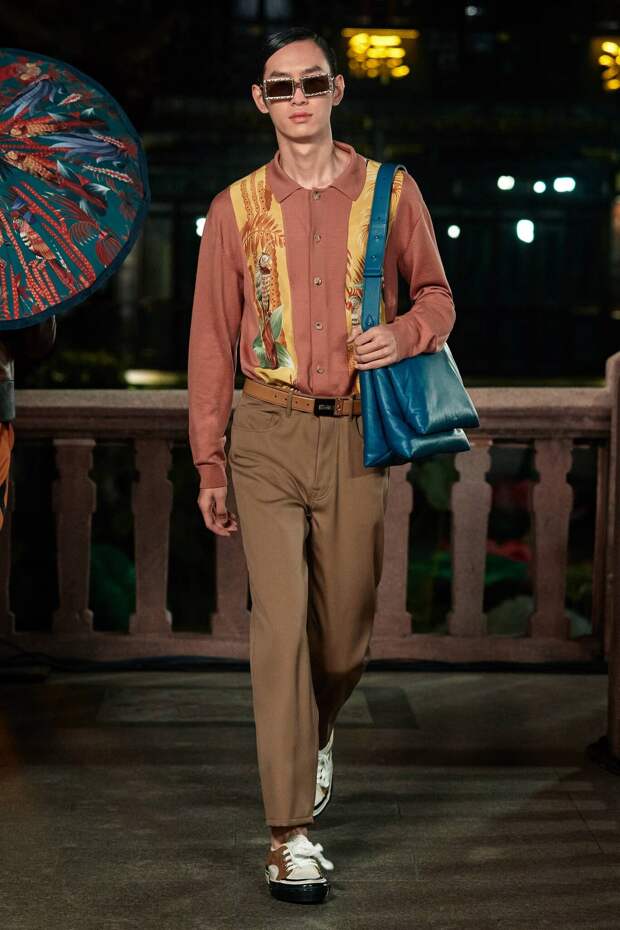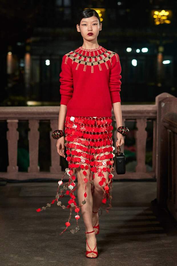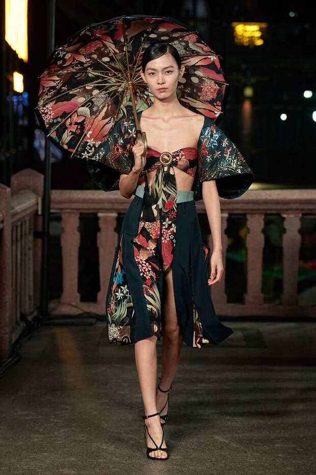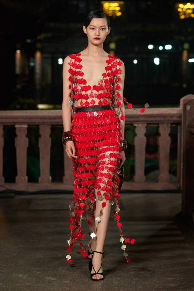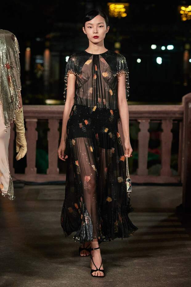 Также в шоу появились принты, навеянные знаменитыми иллюстрациями Жоржа Лепапа, которые он рисовал для Lanvin, и каблуки на босоножках, цитирующие крышку на флаконах винтажных духов Дома. В целом все шоу было пронизано духом ар-деко — и в этом тоже прослеживается бесспорная логика. Пик славы Жанны Ланвен пришелся на 20-30-е годы — эпоху доминирования этого стиля в искусстве по всему миру. Да и сама она в некотором смысле была его воплощением. Главные признаки ар-деко — цвет, геометрия и простые формы. И все они очевидным образом прослеживались в ее простых и очень удобных вещах с большим количеством драгоценного декора.Еще одним важным лейтмотивом коллекции стал Китай — начиная с проведения показа в Шанхае и заканчивая принтами в стиле шинуазри на платьях и топах. И это, опять же, очень логичное решение сразу на нескольких уровнях. Во-первых, Lanvin сейчас входит в китайский финансово-промышленный конгломерат Fosun International. Во-вторых, Китай все последние годы был главной надеждой и опорой всего мира моды — именно китайские потребители оказались самыми лояльными и щедрыми. В-третьих, страна быстрее всех пережила и победила коронавирус — а значит, там, в отличие от родного для марки Парижа, можно устраивать полноценные показы с неограниченным числом гостей. И, наконец, в творчестве Жанны Ланвен также не раз обнаруживались отчетливые китайские мотивы — например, вышивки в стиле шинуазри на тех самых знаменитых robe de style. Судя по всему, Бруно Сиалели знает, что делает. Причем не только в части творчества, но и бизнеса — работать именно с китайским рынком сейчас выгоднее всего.