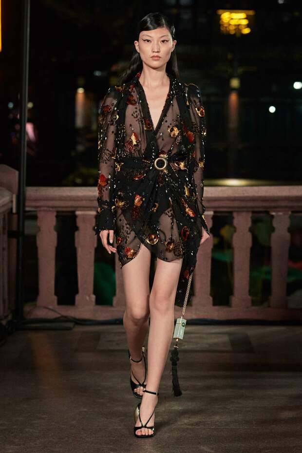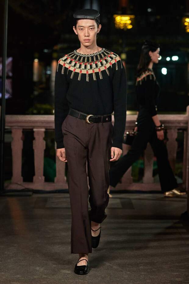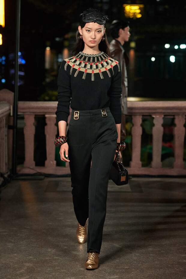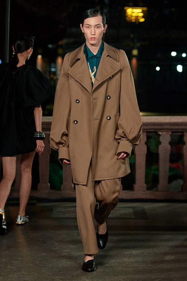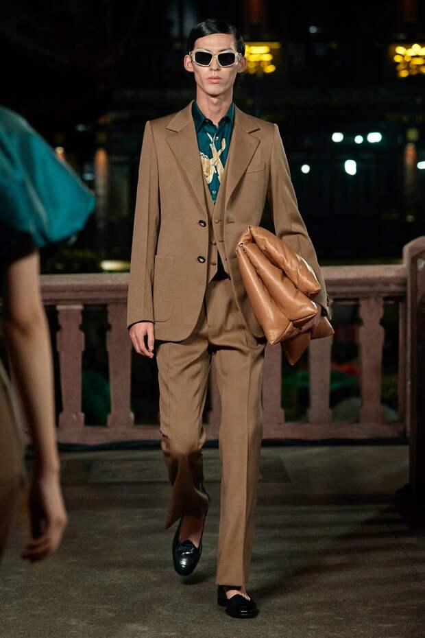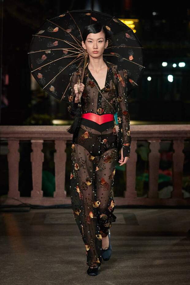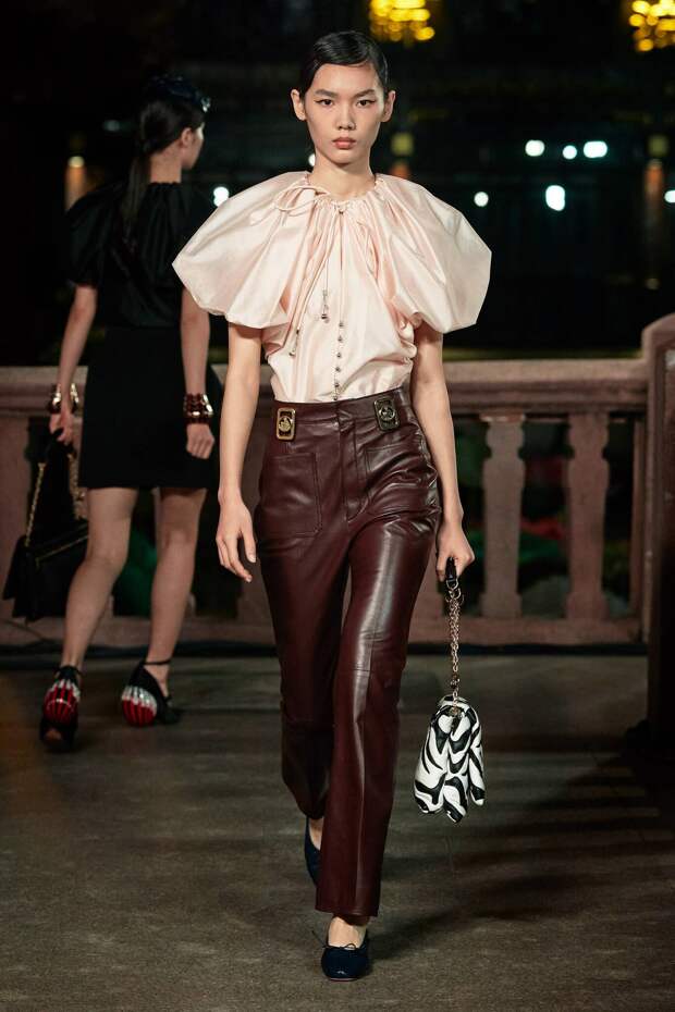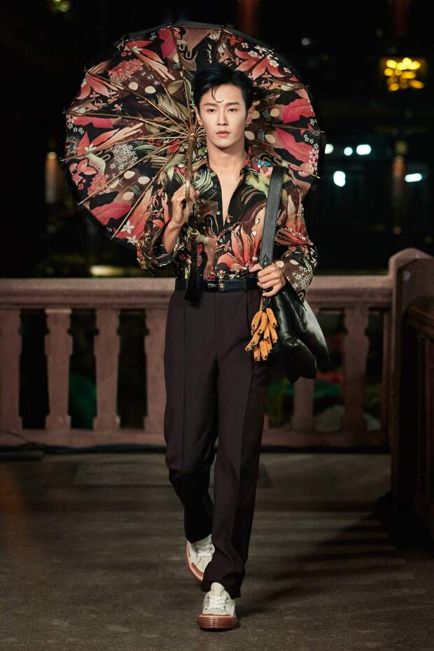 Также в шоу появились принты, навеянные знаменитыми иллюстрациями Жоржа Лепапа, которые он рисовал для Lanvin, и каблуки на босоножках, цитирующие крышку на флаконах винтажных духов Дома. В целом все шоу было пронизано духом ар-деко — и в этом тоже прослеживается бесспорная логика. Пик славы Жанны Ланвен пришелся на 20-30-е годы — эпоху доминирования этого стиля в искусстве по всему миру. Да и сама она в некотором смысле была его воплощением. Главные признаки ар-деко — цвет, геометрия и простые формы. И все они очевидным образом прослеживались в ее простых и очень удобных вещах с большим количеством драгоценного декора.Еще одним важным лейтмотивом коллекции стал Китай — начиная с проведения показа в Шанхае и заканчивая принтами в стиле шинуазри на платьях и топах. И это, опять же, очень логичное решение сразу на нескольких уровнях. Во-первых, Lanvin сейчас входит в китайский финансово-промышленный конгломерат Fosun International. Во-вторых, Китай все последние годы был главной надеждой и опорой всего мира моды — именно китайские потребители оказались самыми лояльными и щедрыми. В-третьих, страна быстрее всех пережила и победила коронавирус — а значит, там, в отличие от родного для марки Парижа, можно устраивать полноценные показы с неограниченным числом гостей. И, наконец, в творчестве Жанны Ланвен также не раз обнаруживались отчетливые китайские мотивы — например, вышивки в стиле шинуазри на тех самых знаменитых robe de style. Судя по всему, Бруно Сиалели знает, что делает. Причем не только в части творчества, но и бизнеса — работать именно с китайским рынком сейчас выгоднее всего.