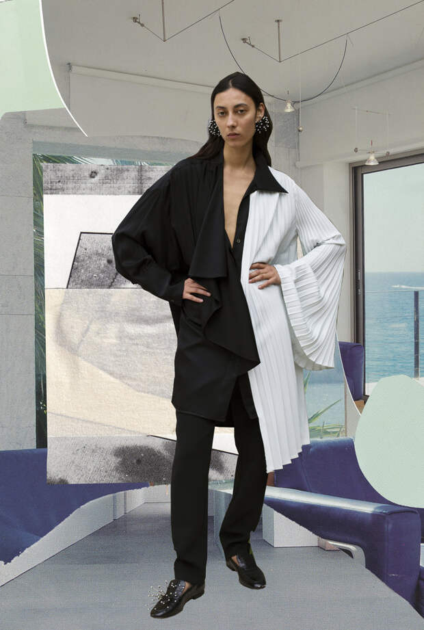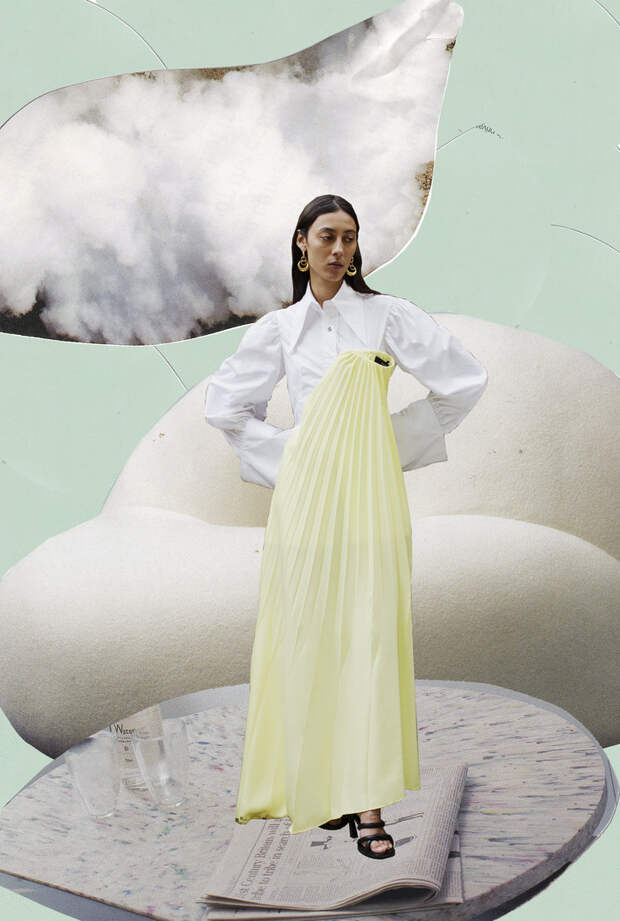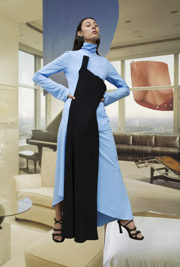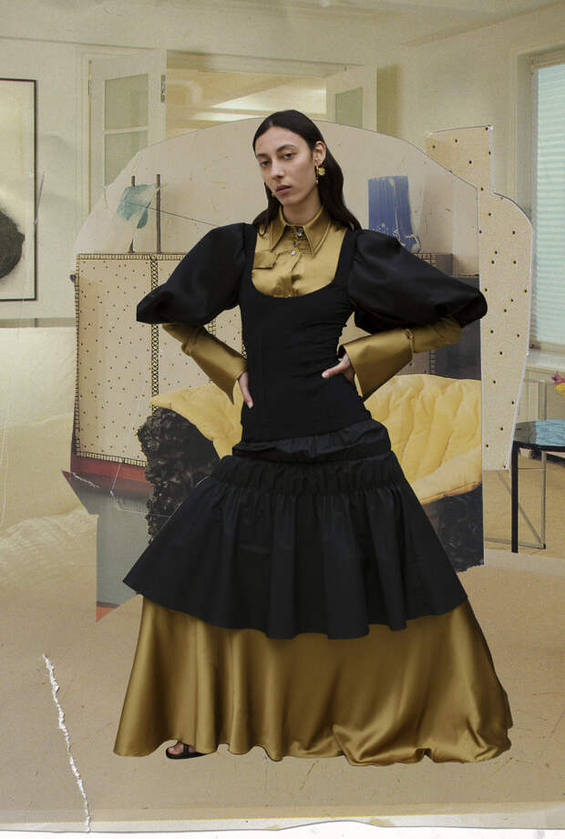 Эллери, дизайнер с более чем 10-летним опытом работы, уже давно хотела сделать какой-нибудь важный проект в области устойчивого развития и поддержать начинающего талантливого коллегу. Когда в прошлом году она познакомилась с Дюраном Лантинком, она поняла, что нашла идеального партнера для такого сотрудничества. После первой же беседы они решили, что должны поработать вместе. Так родилась идея Ellery X Duran — капсулы из 10 луков, созданных Лантинком из переработанных архивных вещей Ellery. В ней внимание к деталям и сложные драпировки Ellery встречаются с радикальным подходом к апсайклингу, уже ставшим знаковым для Дюрана Лантинка. 150 вещей из архивов бренда были деконструированы для того, чтобы сделать из них абсолютно новые образы. Вся коллекция делалась в локдауне, дизайнеры обменивались идеями в WhatsApp и Zoom.