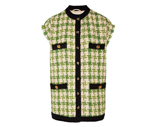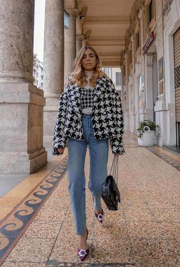 Присмотритесь к ультрамодному жилету в стиле преппи от Gucci или укороченному кардигану от Rokh. Сочетайте их с однотонными топами и брюками-палаццо бежевого цвета. Останавливаться на одном приобретении с pied-de-poule не рекомендуем. Вдохновитесь подборкой лучших вещей в «гусиную лапку» – этот принт точно станет вашим любимым.