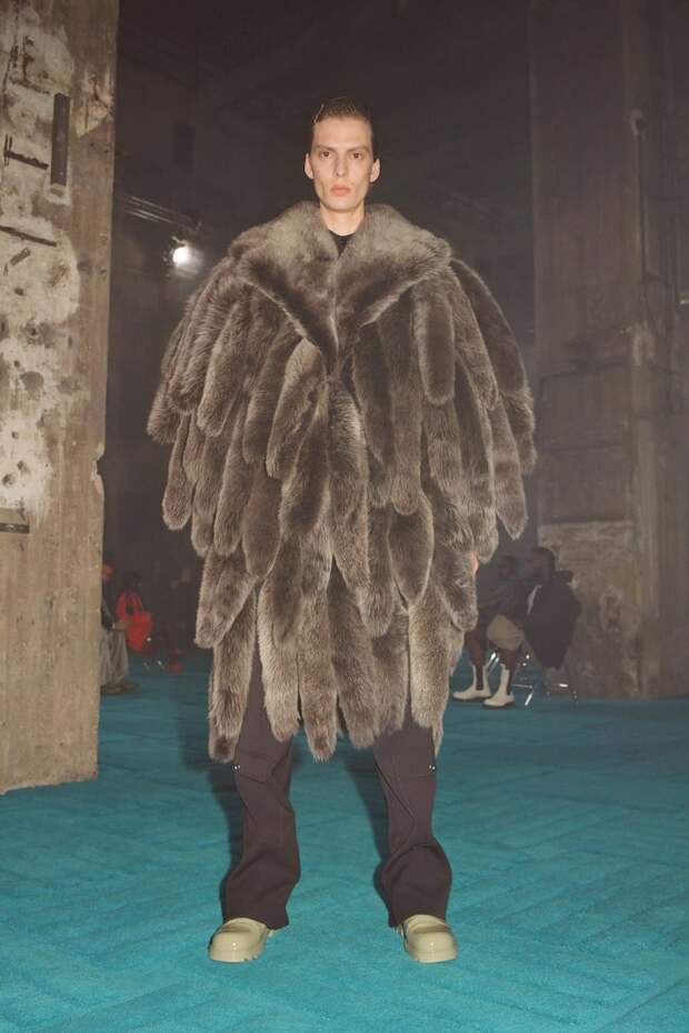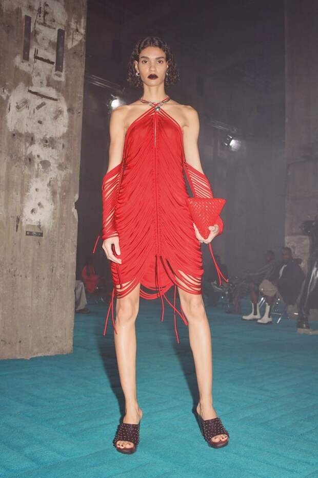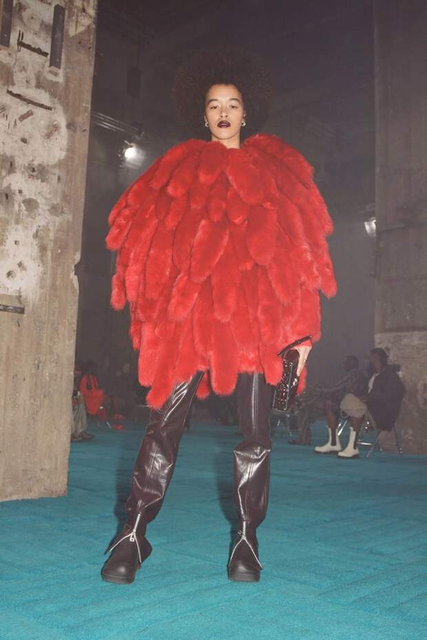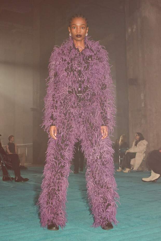 Но еще лучше, чем интриговать и нарушать правила, он умеет кое-что другое. А именно — создавать самые настоящие объекты желания, которые разлетаются с полок бутиков со скоростью света. Клатчи The Pouch, сумки Cassette, резиновые сапоги Puddle и босоножки с квадратным носом его авторства уже успели «прописаться» в хрониках стритстайла и гардеробах самых стильных девушек мира. Именно поэтому мы каждый сезон с надеждой ждем от него новых хитов. И, кажется, на этот раз снова их получили. Вот, например, главная обувь коллекции — «рыбацкие» ботфорты с широким голенищем, вполне могут потеснить уже ставшие культовыми Puddle. А комбинезоны из эластичного денима, вручную вышитые разноцветными перьями (на один ушло более 4 тысяч перьев и более 100 часов работы) мы, пожалуй, еще не раз увидим на красных ковровых дорожках. Как и чуть более скромные трикотажные платья, шубы из цветной бахромы и сияющие платья, покрытые стразами.
