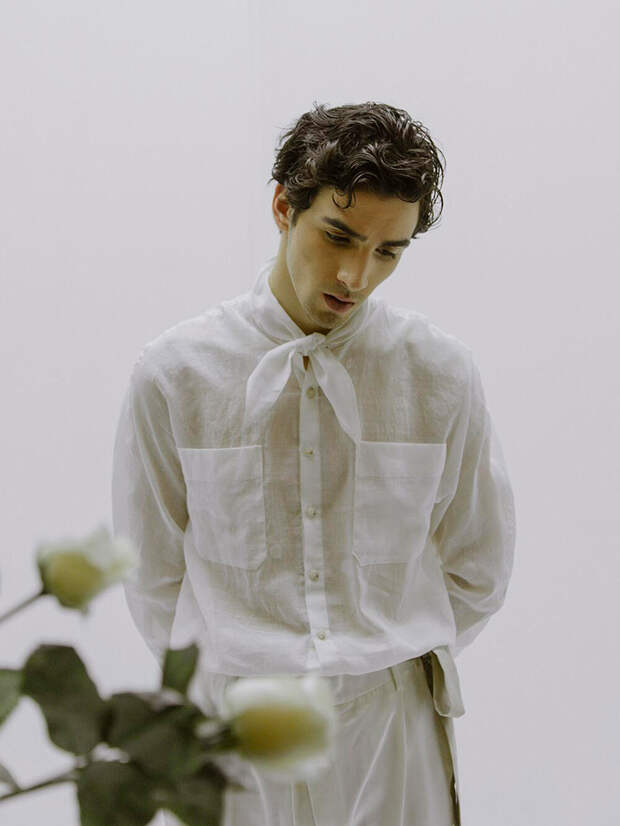 Наверное, это то, что я чувствую сейчас: плотный график, напряжение, невозможность побыть наедине с собой. Мои герои совершают побег не только от городской суеты, но и от времени: есть в их образах что-то средневековое и благородное. Они носят плетеные шляпы, невесомые вуали, их одежда украшена цветами — живыми и искусственными. Так я вижу современных мужчину и женщину: романтичными, хрупкими, но не слабыми.