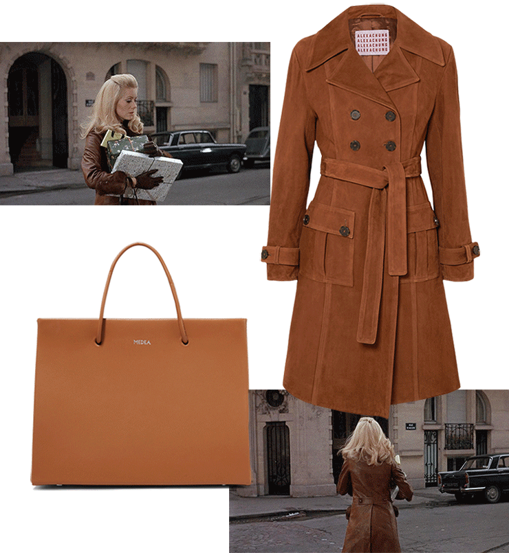“Ничего себе - Yves Saint Laurent! - с благоговением произносит напарница эффектной блондинки, взяв в руки ее лаковый плащ. - Дашь поносить?”Признаться, мы бы и сейчас, полвека спустя после выхода знаменитой французской киноленты, не отказались бы позаимствовать у героини Катрин Денев большую часть ее гардероба. Образы, в которых актриса предстает перед камерой, остаются актуальными и сегодня - так почему бы не попробовать их повторить на современный лад?