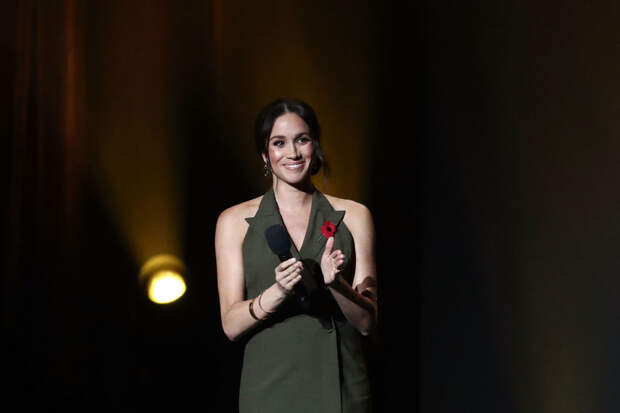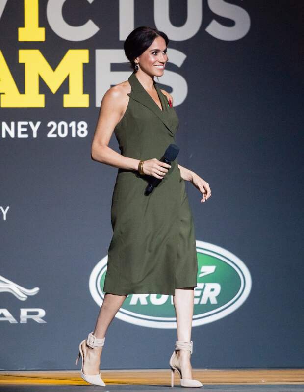 Для своих «беременных выходов» Меган Маркл выбирает элегантные (и не всегда очевидные) наряды. Так, вчера вечером герцогиня Сассекская появилась на торжественной церемонии закрытия Invictus Games в оливковом платье-жакете без рукавов британской марки Antonio Berardi. Лаконичный образ Меган дополнила парой золотых браслетов, массивными серьгами и бежевыми шпильками с широким ремешком и декоративной застежкой-брошкой на щиколотке Aquazzura.