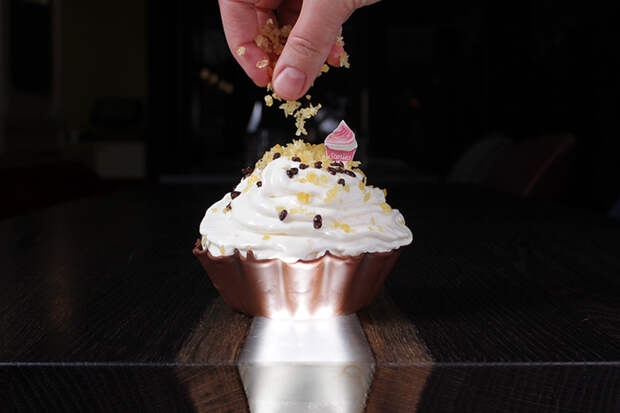 Из новых хитов — A.Pavlova с силуэтом балерины, Millefeuille с кедровым жмыхом и кедровым пралине, сливочный Crème brûlée с ядрами фисташек и цукатами из лимона, а также Chocolate CupCake с воздушным рисом, взрывающейся карамелью и сливочно-сырной эспумой. Последний, кстати, делается без муки — модный нынче тренд.