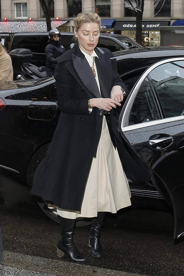 Эмбер Херд в числе прочих знаменитостей также прибыла в Париж, чтобы посетить показы в рамках кутюрной недели моды. Так, вечером 22 января ее можно было увидеть в первом ряду на шоу Armani Privé. А несколькими часами ранее актриса спешила в свой отель, чтобы привести себя в порядок к вечеру.