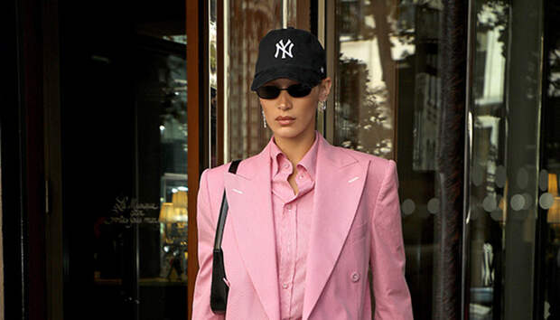 Рубашка в тон жакету - новый стилистический трюк, который стоит позаимствовать у Беллы Хадид, которая сейчас находится в Париже. Супермодель была замечена при выходе из своего отеля в сложносочиненном образе. Розовый верх дополнили джинсы, заправленные в высокие "армейские" ботинки на шнуровке, бейсболка, солнцезащитные очки в стиле ретро и маленькая сумочка-багет.