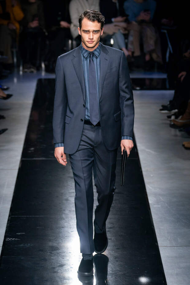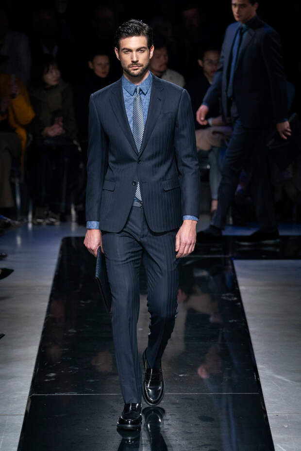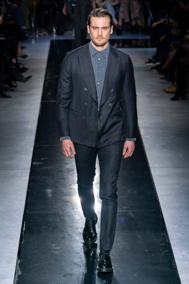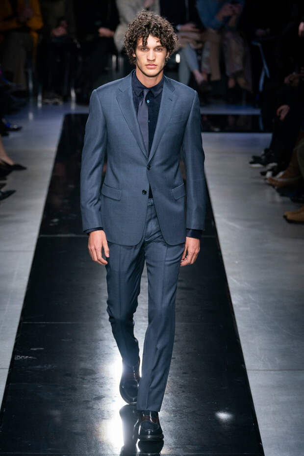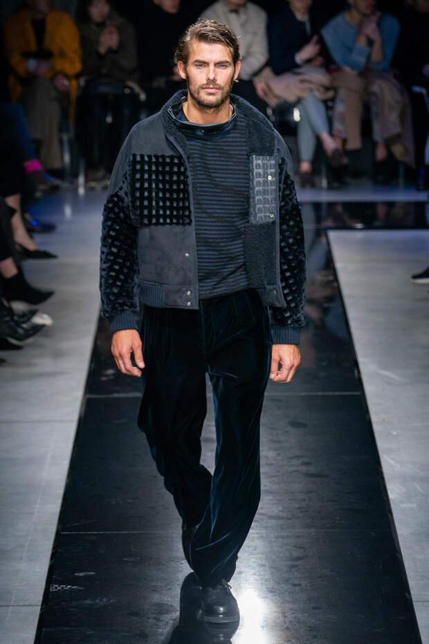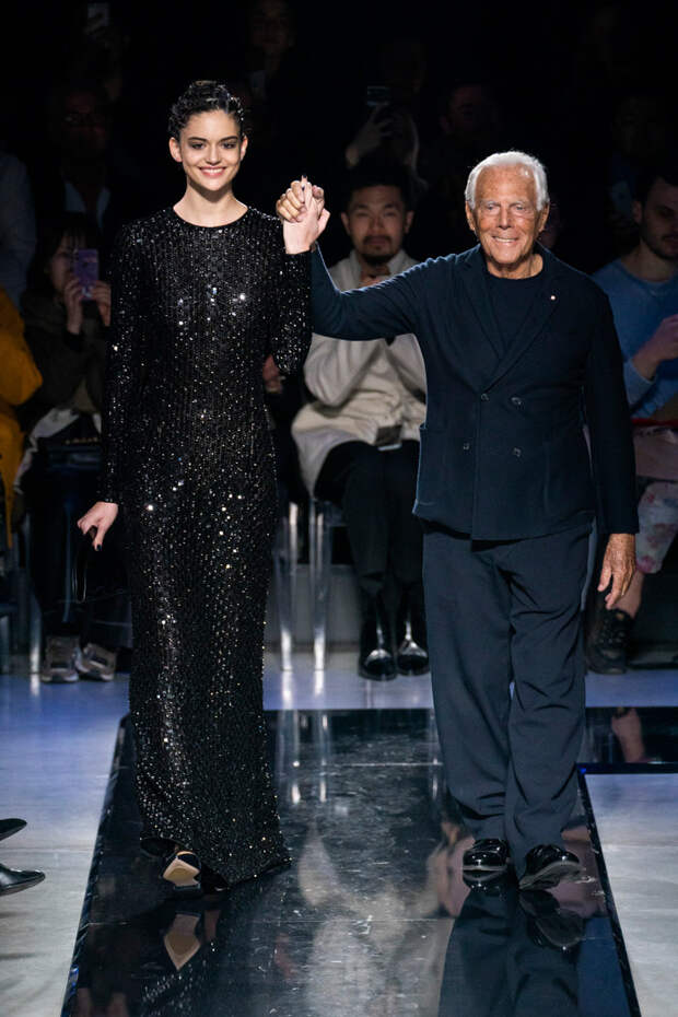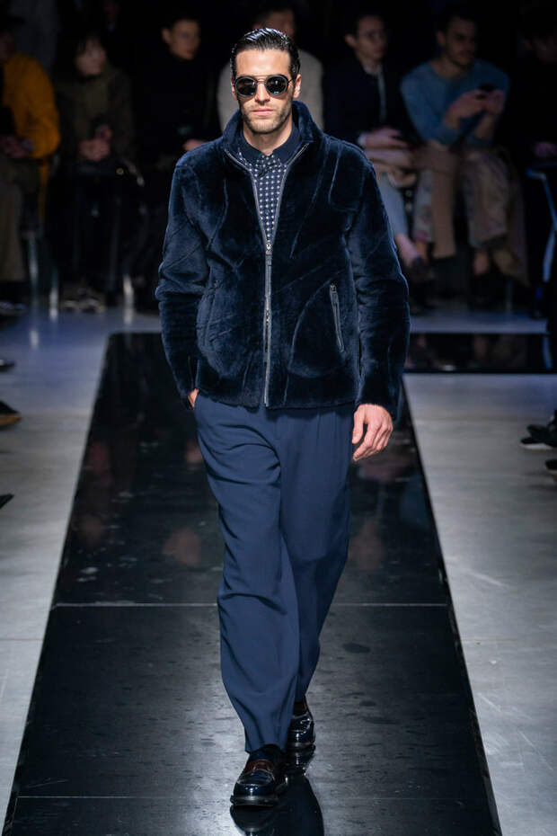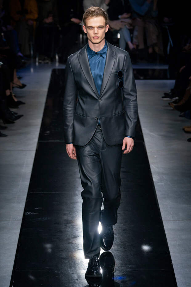 Мы носим oversize и любим ugly chic — так почему бы не дать шанс и этим брюкам? Тем более Джорджо Армани их подает максимально эффектно. С жакетами, напоминающими мундиры космических солдат благодаря электрической синей «разметке». С пышными, словно не сшитыми, а скрученными из сияющей ткани блузами. С пижамными рубашками и боа из перьев.