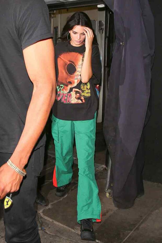 По наряду Кендалл становится понятно, что она не стремится привлекать внимание к переменам в личной жизни: растянутая футболка, широкие штаны и кроссовки смотрятся максимально повседневно и не похожи на образ для романтической встречи.