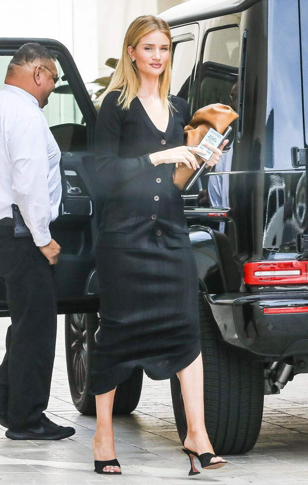 Если и вы следите за самыми модными сумками сезона и просматриваете стристайл-хроники, то точно оцените выбор Роузи Хантингтон-Уайтли. Модель отправилась на деловую встречу в Беверли-Хиллз, сжимая в руках ноутбук и объемный клатч Bottega Veneta. Роузи выбрала it-bag из кожи в рыжем оттенке (итальянский бренд выпускает Pouch как в ярких, так и в пастельных тонах), но не стала ограничиваться одним акцентом в образе и надела мюли Amina Muaddi с открытым мысом и каблуком-рюмочкой, а нейтральным фоноv выступил дуэт из платья и кардигана в рубчик от Totême.