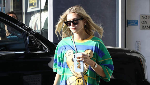 Для импровизированного свидания (под "теплой" опекой папарацци) модель выбрала футболку авторства Джастина — из коллекции его бренда Drew House, а заодно показала чехол для смартфона, чей дизайн тоже придумал ее возлюбленный. Надо признать, что футболка бойфренда, пусть и в паре с почти незаметными микрошортами, смотрится на Хейли куда сексуальнее более откровенных мини-платьев.