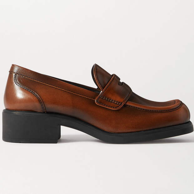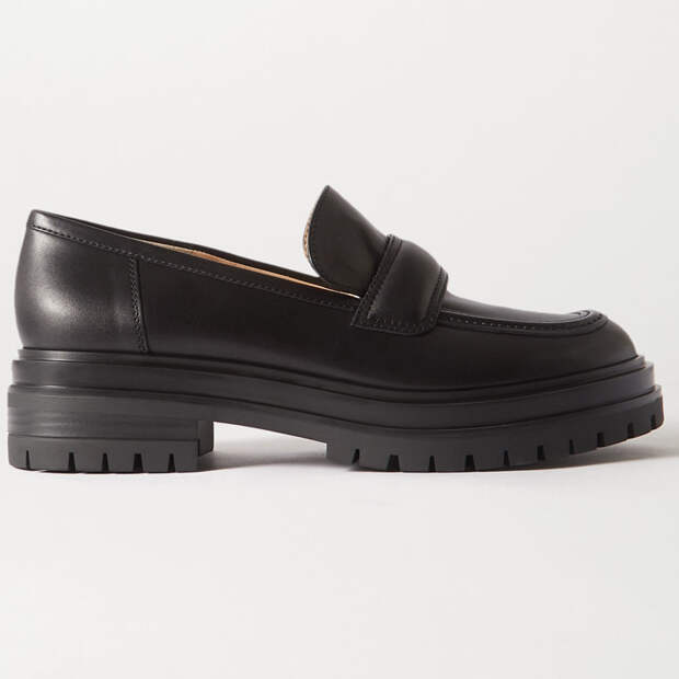 Конечно, есть и варианты лоферов для особых случаев — из бархата, замши, с брошами и пряжками, с заклепками, кристаллами, бахромой и еще тысячей вариантов декора. Но сегодня нас интересуют только те опции, в которых, как говорится, и в пир, и в мир. Те, которые одинаково стильно будут смотреться и с джинсами, и с брючным костюмом, и даже с маленьким черным платьем. Их определяют несколько факторов. Во-первых, материал: желательно, чтобы это была гладкая кожа, матовая или глянцевая. Как известно, такая фактура без особого труда сочетается со всем. Во-вторых, отсутствие лишнего декора. Повторимся: стразы, огромные пряжки, заклепки и прочее оставим для особых случаев и statement-аксессуаров. И, наконец, лаконичная форма — желательно круглый нос и невысокий квадратный каблук. А вот массивная толстая подошва вполне допустима: она уже давно перестала быть чем-то из ряда вон и превратилась из острого тренда в нечто, что присутствует в моде из сезона в сезон. Именно такие варианты мы и собрали в своей подборке — а вам теперь не придется ломать голову, где же их найти.