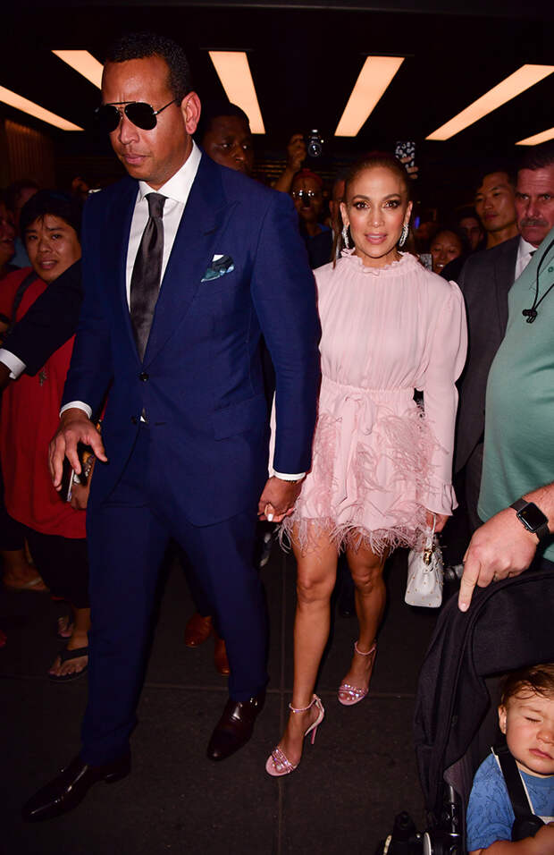 Дженнифер Лопес и Алекс Родригес, кажется, не расстается ни на минуту. После отпуска в Италии, где певица сменила множество роскошных курортных образов, пара вернулась к работе. Влюбленные посетили студию NBC в Нью-Йорке. Лопес выбрала короткое платье с отделкой из перьев нежно-розового оттенка и босоножки Gucci в тон.