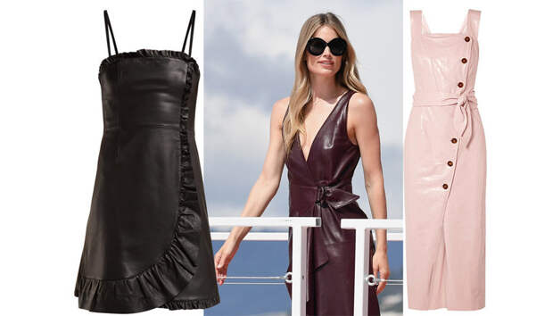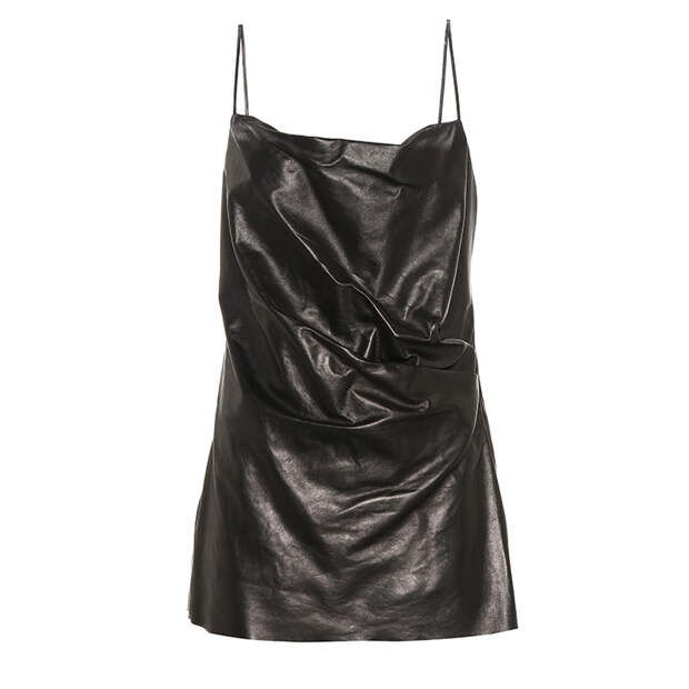 Если хотите тоже следовать актуальному тренду и даже летом носить кожу, берите пример с экс-ангела Victoria's Secret: выбирайте модели с открытыми руками и глубокими декольте, отдавайте предпочтение длине мини, а если выбираете миди, следите, чтобы оно не слишком прилегало к бедрам - чем свободнее сидит наряд, тем вам будет комфортнее. В нашей подборке - 10 самых интересных вариантов от Alexachung, Acne Studios, Nanushka и других брендов.