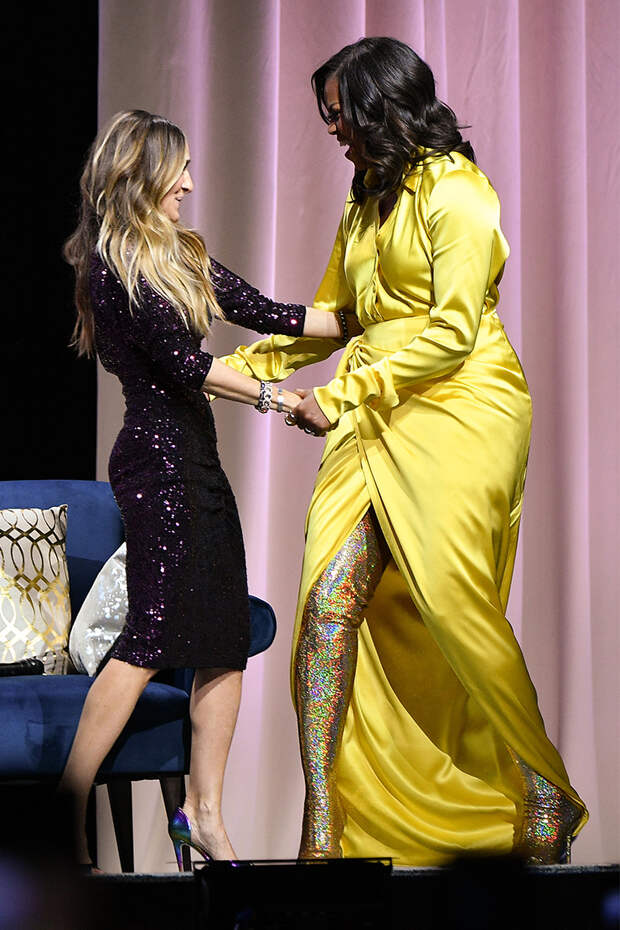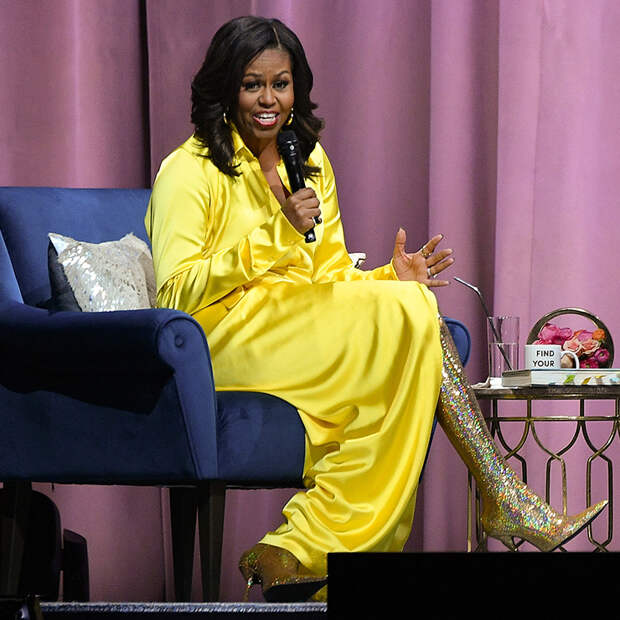 На днях Мишель Обама потрясла общественность, появившись на очередной презентации своей книги Becoming в лимонно-желтом платье и золотых ботфортах с цветным глиттером Balenciaga. Фотографии бывшей первой леди в этом экстравагантном наряде мгновенно облетели все СМИ. Равнодушных не осталось: кто-то восхитился смелым выбором знаменитости, а кто-то, напротив, осудил ее за вызывающий вид.