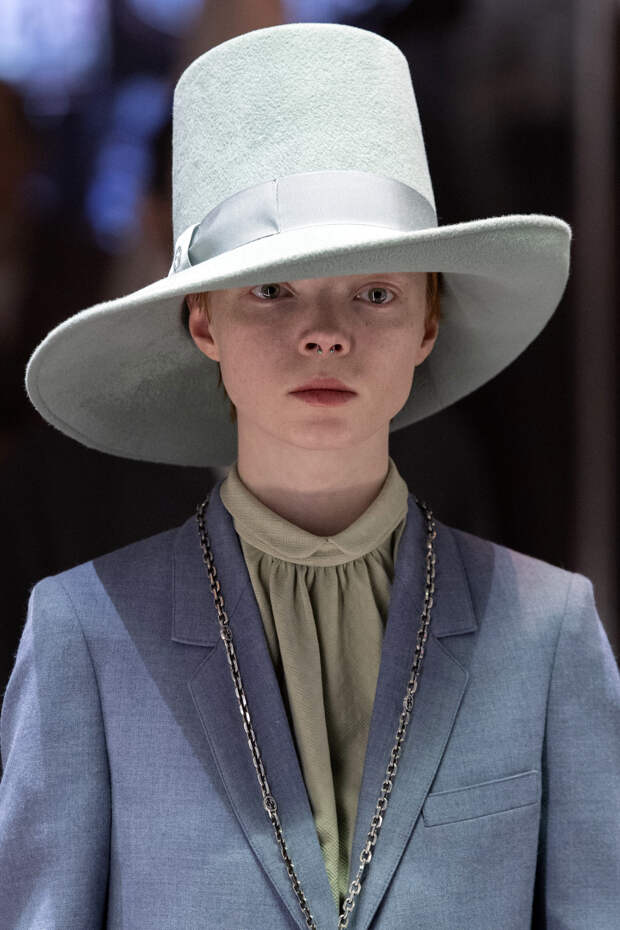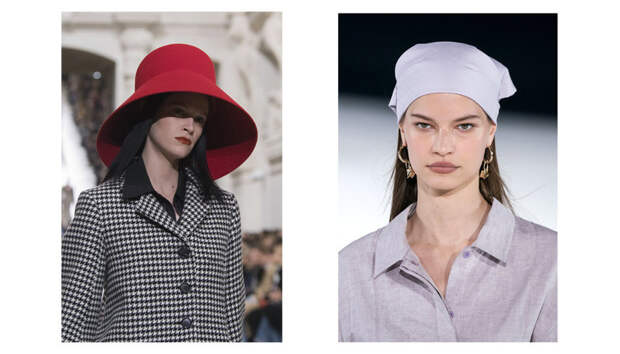 В части головных уборов дизайнеры в новом сезоне явно разделились на два лагеря: любители шляп с широкими полями и фанаты косынок. И если первые — это отсылка к 80-м с их гипертрофированными формами, то второй вариант — однозначно феминистская семидесятническая история.