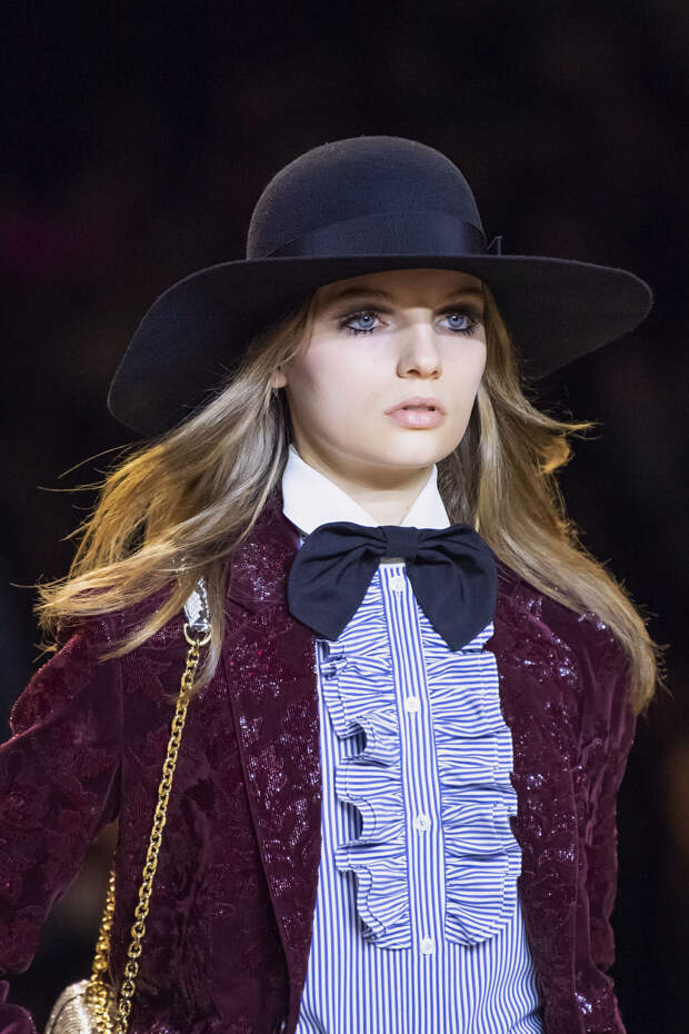 Что же до шляп, то их точно было не меньше. Алессандро Микеле сделал для Gucci экстравагантные федоры в разных цветах, Джон Гальяно в Maison Margiela остановился на белых, но дополнил их вуалями. Но наш фаворит — оверсайз-котелки всех цветов радуги от Nina Ricci. Они не только защитят от осеннего ветра, но еще и поднимут настроение своим сочным оттенком.