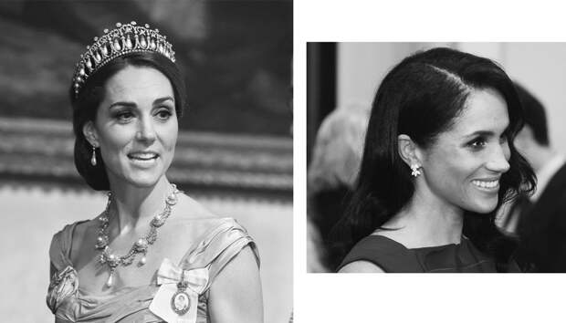 Эксперты уверяют, что по настойчивой просьбе Елизаветы II Меган и Кейт не носят бриллианты до 18 вечера, если только это не особенный случай — королева не хочет, чтобы британские монархи выглядели слишком "вызывающе". При этом днем им не воспрещается выбирать украшения из металла, украшенные жемчугом, сапфирами и другими драгоценными камнями.